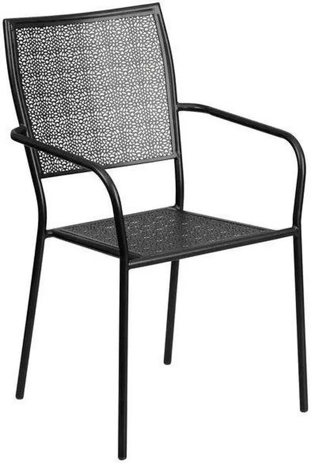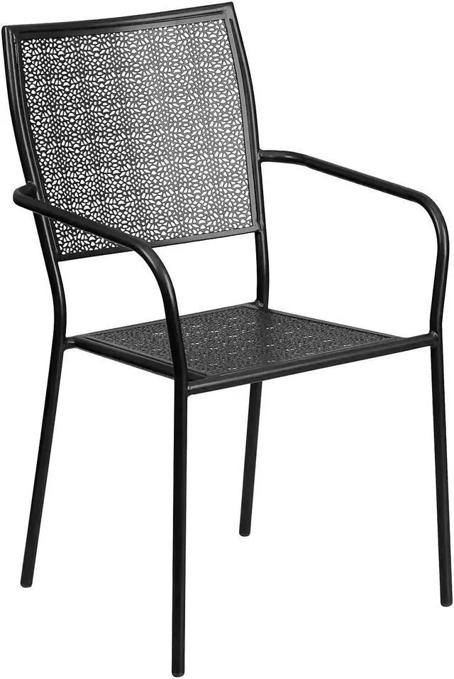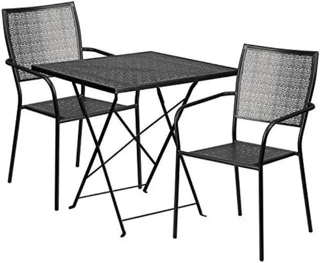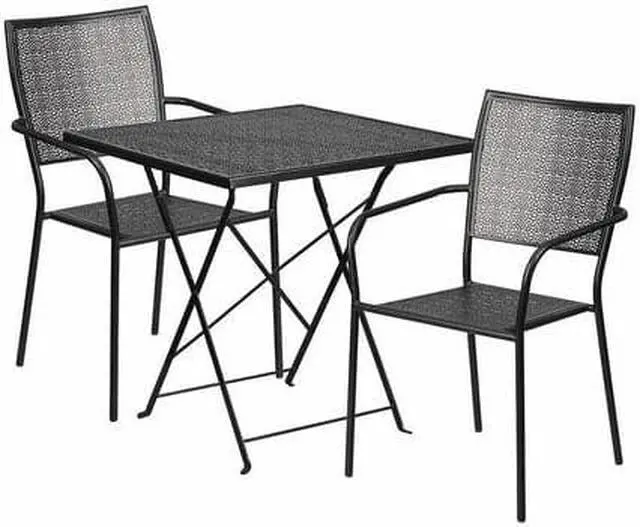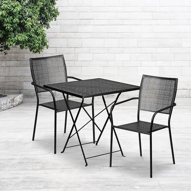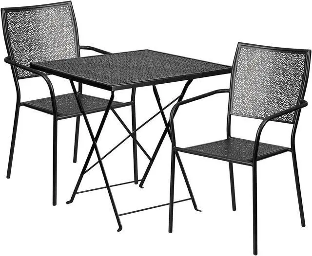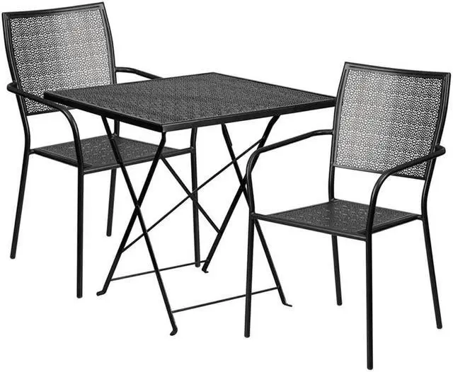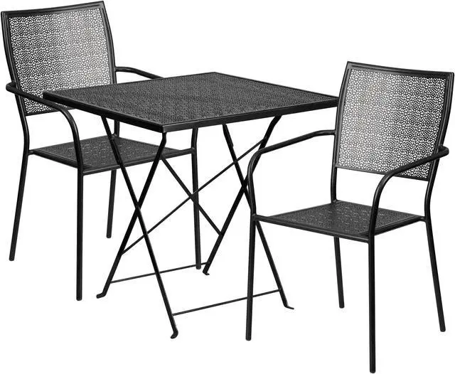 28'' Square Black Indoor-Outdoor Steel Folding Patio Table Set with 2 Square Back Chairs