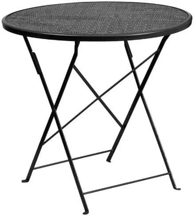 Brighten up your patio space with this beautiful black folding patio table. The rain flower printed top is very appealing. This table will enhance your bistro, cafe, restaurant, hotel or home patio space. With the convenience of a folding table you can use it as a temporary placement or fold away for storage or cleaning the space. Quickly unfold the table by pulling the center brace. The table was designed for all-weather use making it a great option for indoor and outdoor settings. For longevity, care should be taken to protect from long periods of wet weather.