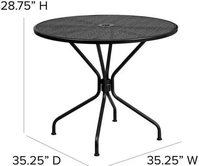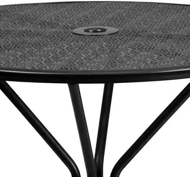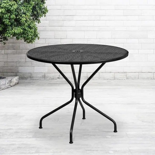 Brighten up your patio space with this beautiful black patio table. The rain flower printed top is very appealing. With the included umbrella hole, you can purchase your desired umbrella to shield you from the sun. This table will enhance your bistro, cafe, restaurant, hotel or home patio space. The table was designed for all-weather use making it a great option for indoor and outdoor settings. For longevity, care should be taken to protect from long periods of wet weather. Pair this table with our rain flower design chairs to complete the look.