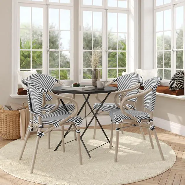 • WEATHER RESISTANT: Breathable woven textilene backs and seats won't fade and dry quickly while the bamboo look metal frames will not rust making them ideal for indoor or outdoor use