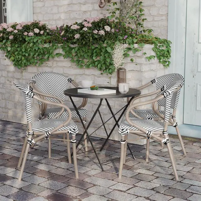 • FRENCH STYLING: Bring the feel of Paris to your home or business with this set of four commercial grade classic french inspired bistro chairs with subtle details that blend well into most design schemes