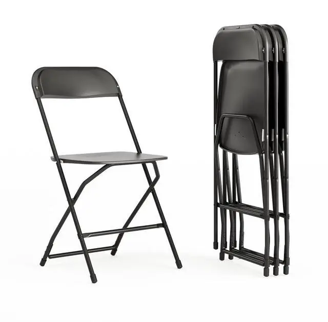 Flash Furniture Hercules Series Plastic Folding Chairs for Parties and Weddings, Stackable Commercial Event Seats with 650-lb. Static Weight Capacity, Set of 4, Black
