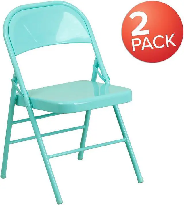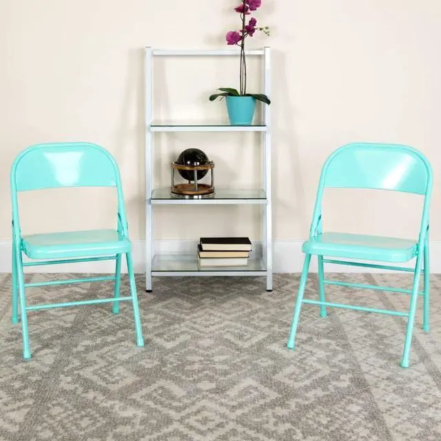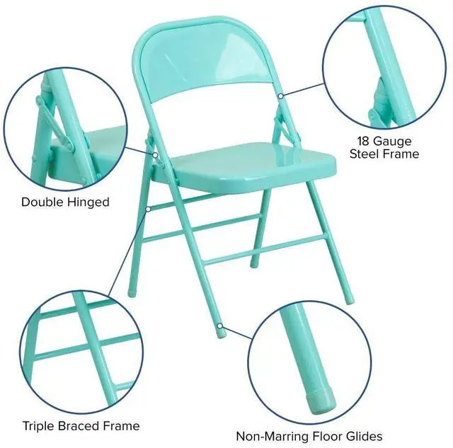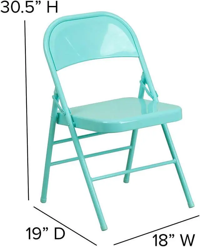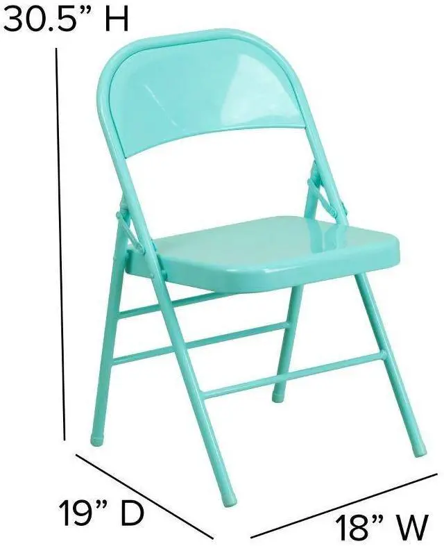 Commercial-grade metal folding chairs designed to be lightweight but durable. This product is engineered and built with premium materials and boast riveted steel components. These metal folding chairs feature premium 18 gauge curved steel frames and double hinged frames. With a variety of vibrant color options choose what would best pair with your needs. This is a commercial-grade on-demand seating solution convenient for weddings, school functions, barbecues, game night, and catering events. Folding chair highlights: - Ready-to-use with no assembly required - Triple braced legs with integrated footrest - Suitable for indoor-outdoor use; Store indoors to protect frame from excessive moisture. - Floor caps to prevent surface and flooring damage - 300 lb. weight capacity- These low-maintenance party event chairs wipe down easily and fold for storage, transport or floor maintenance. Make a smart investment by purchasing multiple folding chairs for your rental business, waiting room or corporate training rooms.