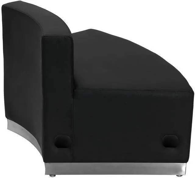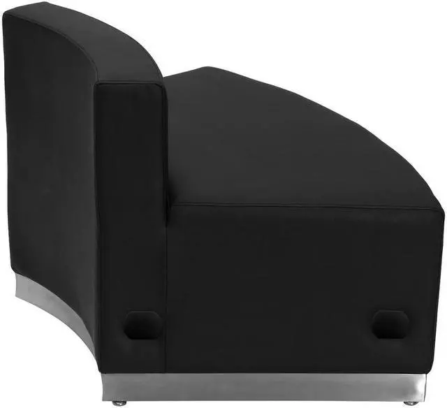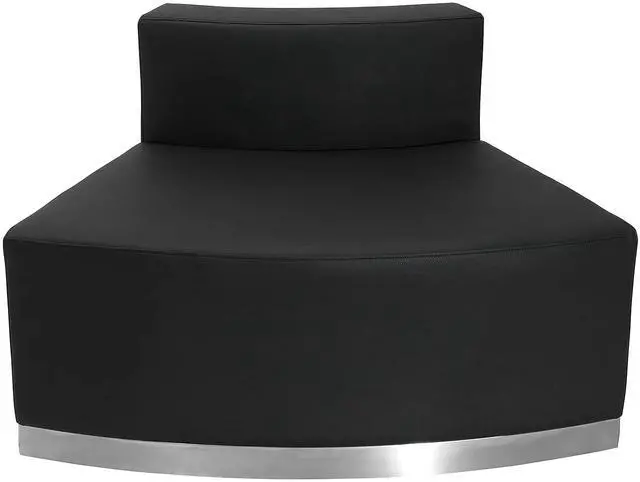 Moving your furniture around is a quick and easy way to change up the look and feel of your space so modular pieces like this black LeatherSoft upholstered convex chair are a must have. LeatherSoft is leather and polyurethane for added softness and durability. This modern chair gives an upscale, sophisticated look to any space and can be used in conjunction with other pieces or as a standalone. The armless design gives the illusion of space and creates an airy feel even in a small room. Supported by a brushed stainless steel base, this piece is durable and will withstand years of use.