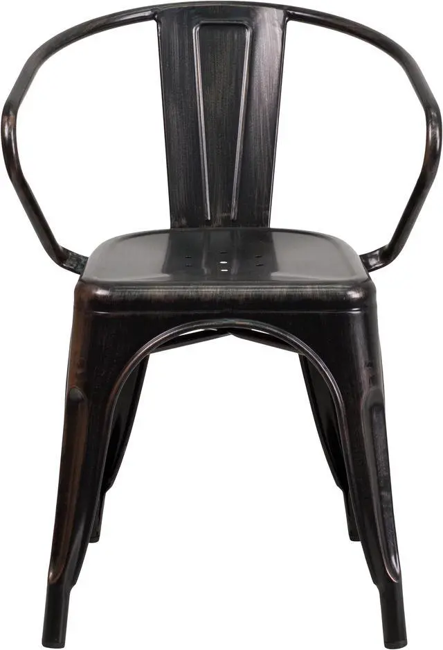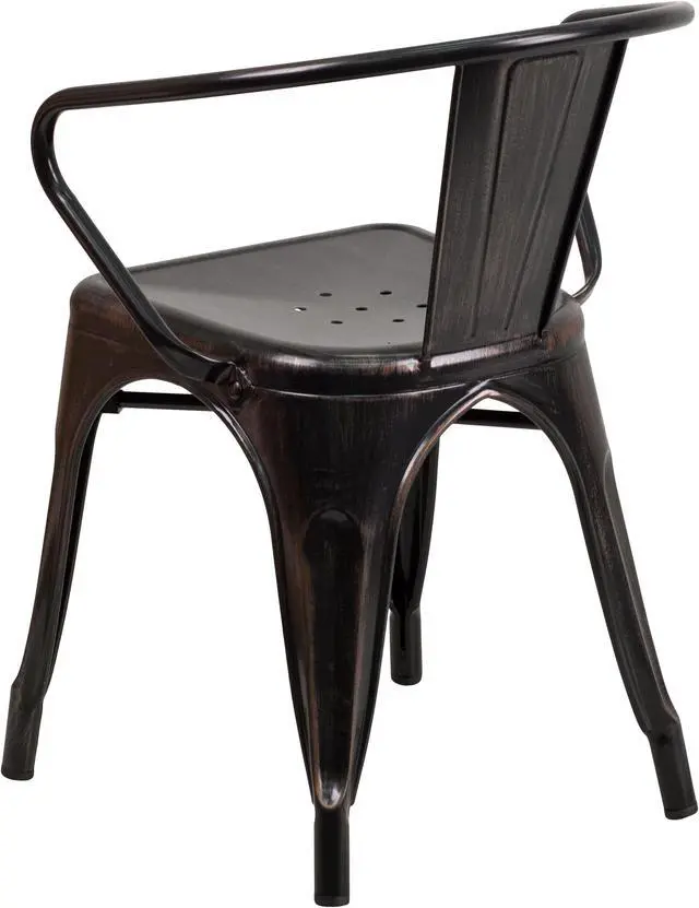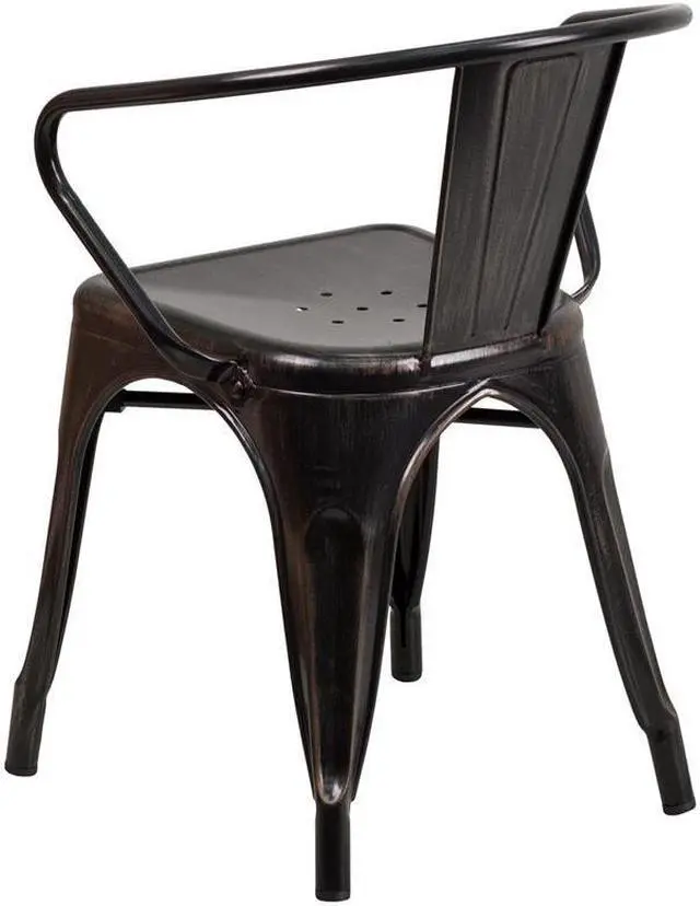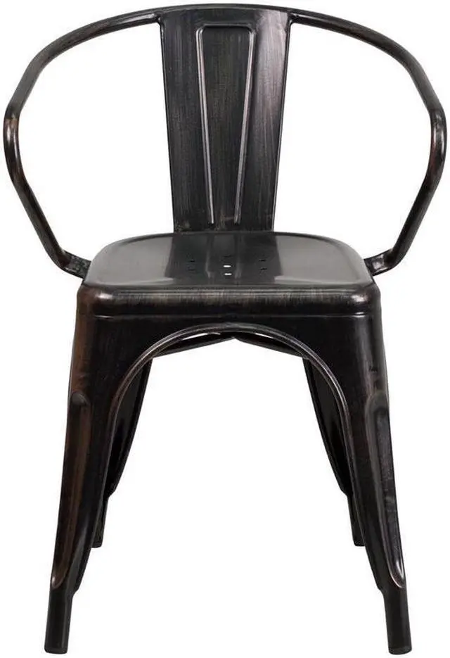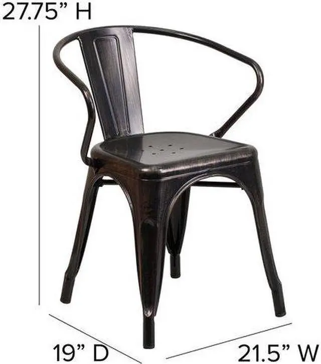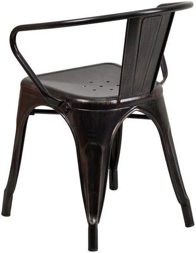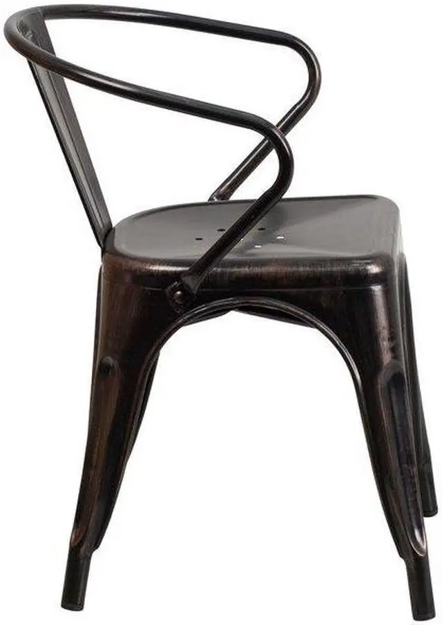 Spice up your kitchen or dining room by adding this colorful antique gold metal chair to your space. This metal dining chair pairs nicely with metal and non metal tables. Whether your home decor is shabby chic, traditional or industrially styled, you'll be surprised how easily this stackable metal chair will blend with your existing decor. Bistro chairs add a trendy old-world look to your restaurant and will add some color to your employee breakroom. These cool colorful chairs can be enjoyed by everyone, high school and college students love to see trendy furniture used in their schools.