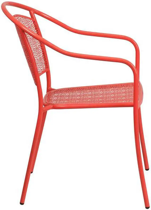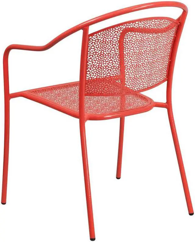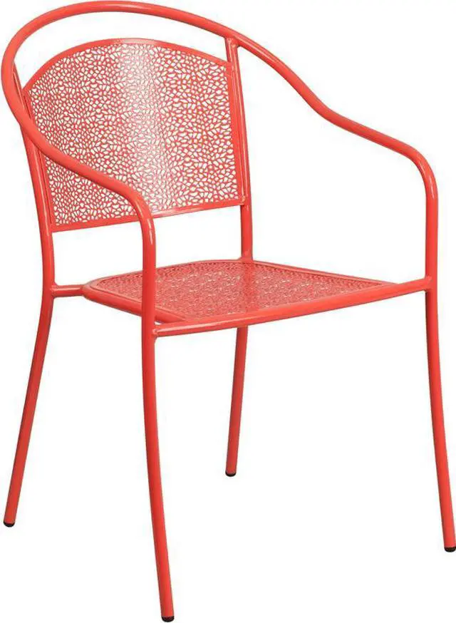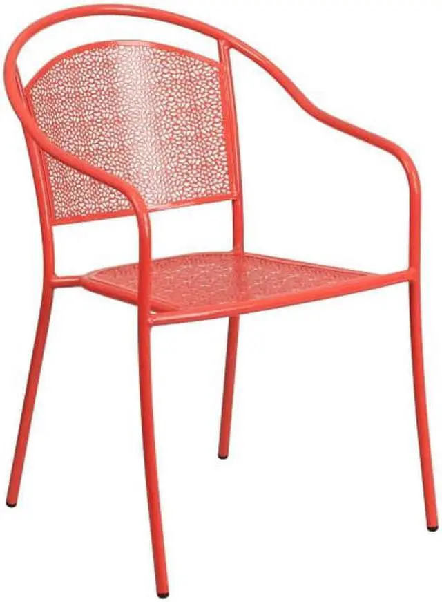 Add color and style to your kitchen, patio or bistro and liven up your decor with this impressively designed chair. This colorful red chair is a rare find that is crafted in a transparent rain flower design. The curved, round back and integrated arms provide a comfortable place to relax. The versatility of this chair allows it to easily go from your backyard to the courtyard dining area of your restaurant. Chairs are lightweight and easily stack for storing. The frame is designed for all-weather use making it a great option for indoor and outdoor settings. For longevity, care should be taken to protect from long periods of wet weather. The legs have protective plastic feet that prevent damage to flooring. [CO-3-RED-GG]
