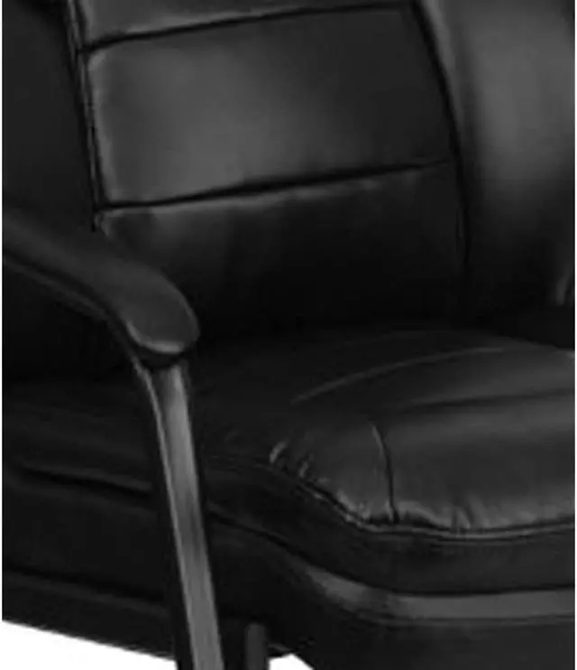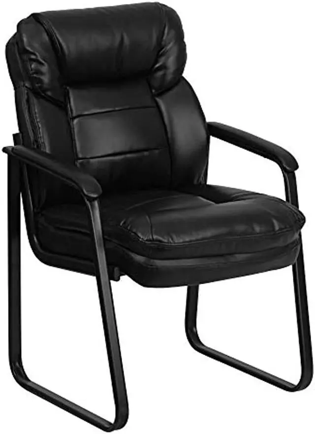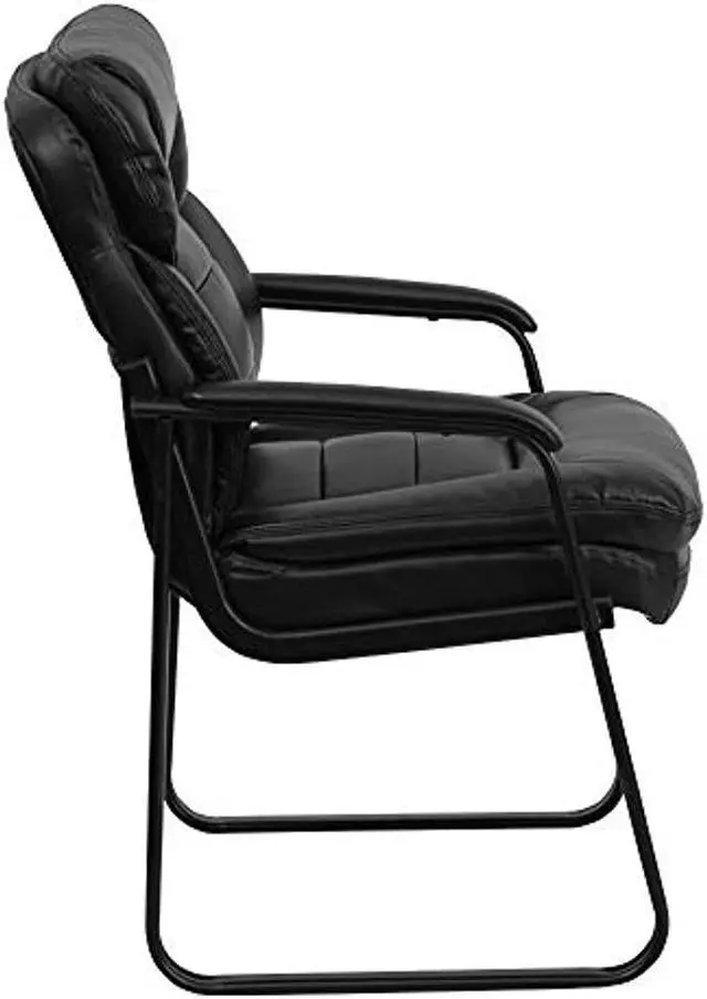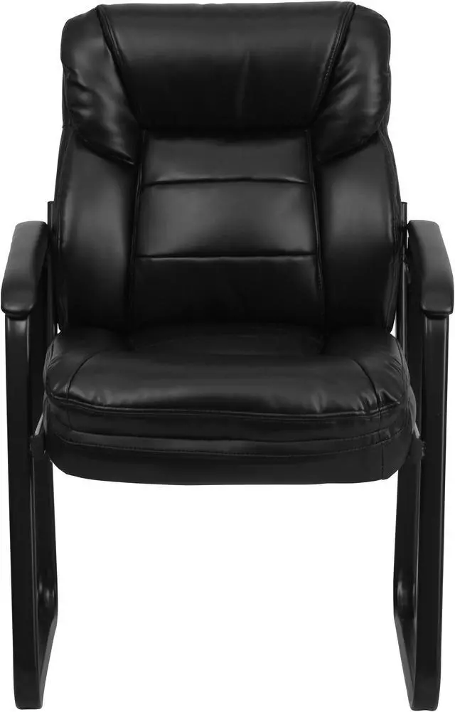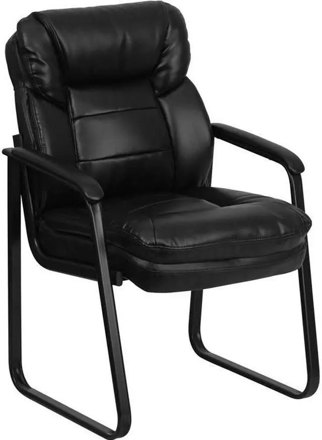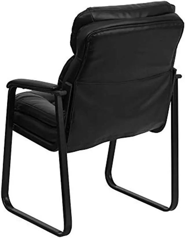 Ideal for any upscale or casual office setting, this LeatherSoft upholstered executive side chair with sled base serves as a stylish, yet comfortable solution for your facility's seating needs. LeatherSoft is leather and polyurethane for softness and durability. This reception chair is the perfect way to greet your patients or clients in your waiting room or reception area. The seat's contoured cushion and pair of curved arms also combine to offer unparalleled comfort. In addition to being able to complement any existing decor, the black metal frame is designed for maximum durability. Plus, a sled base with non-marring floor glides make the chair a great option for carpeted floors, as unlike traditional swivel or straight-legged options, its sled base won't snag and pull the floor's threads or fabrics.Product Dimension-24"W x 26"D x 36"H