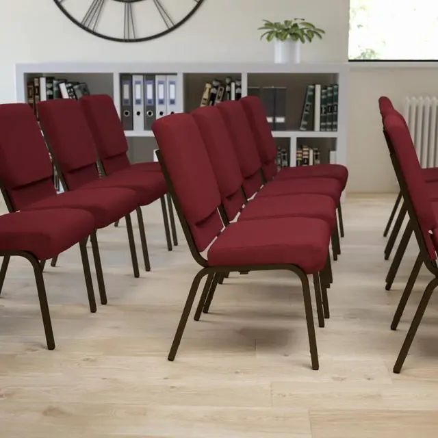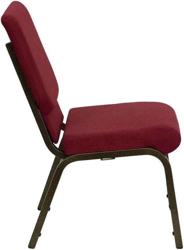 HERCULES Series 18.5''W Stacking Church Chair in Burgundy Fabric - Gold Vein Frame