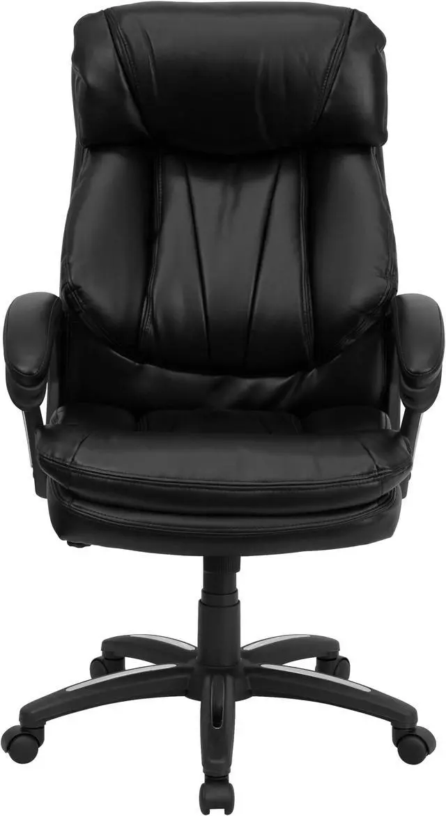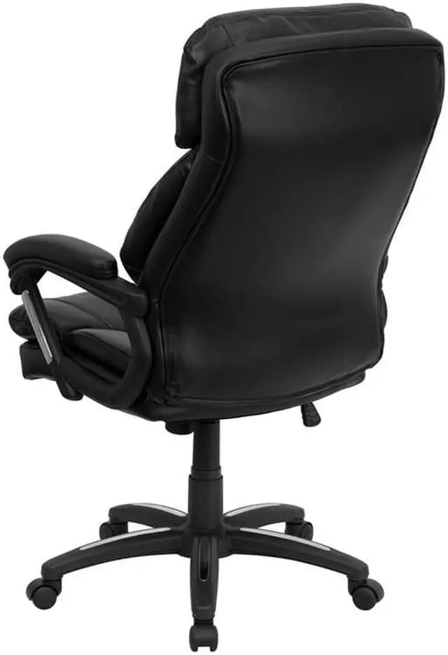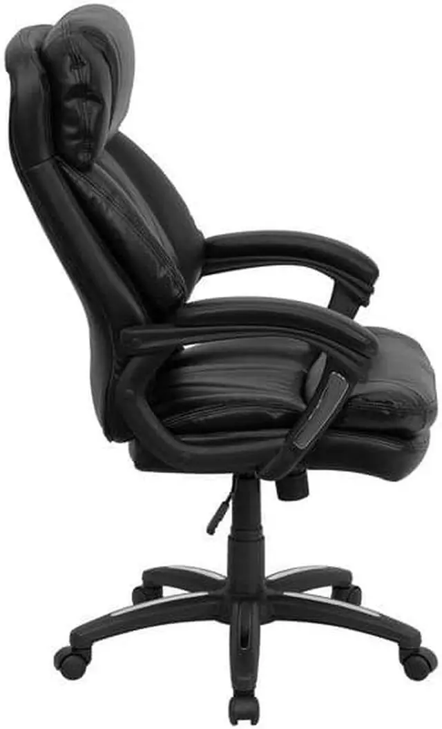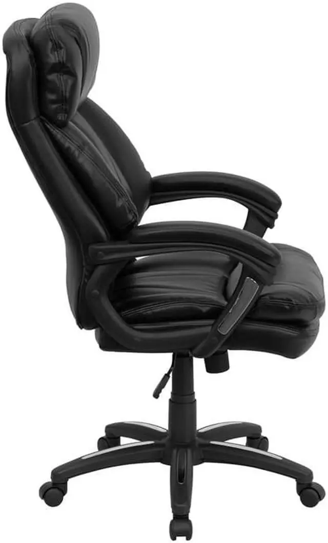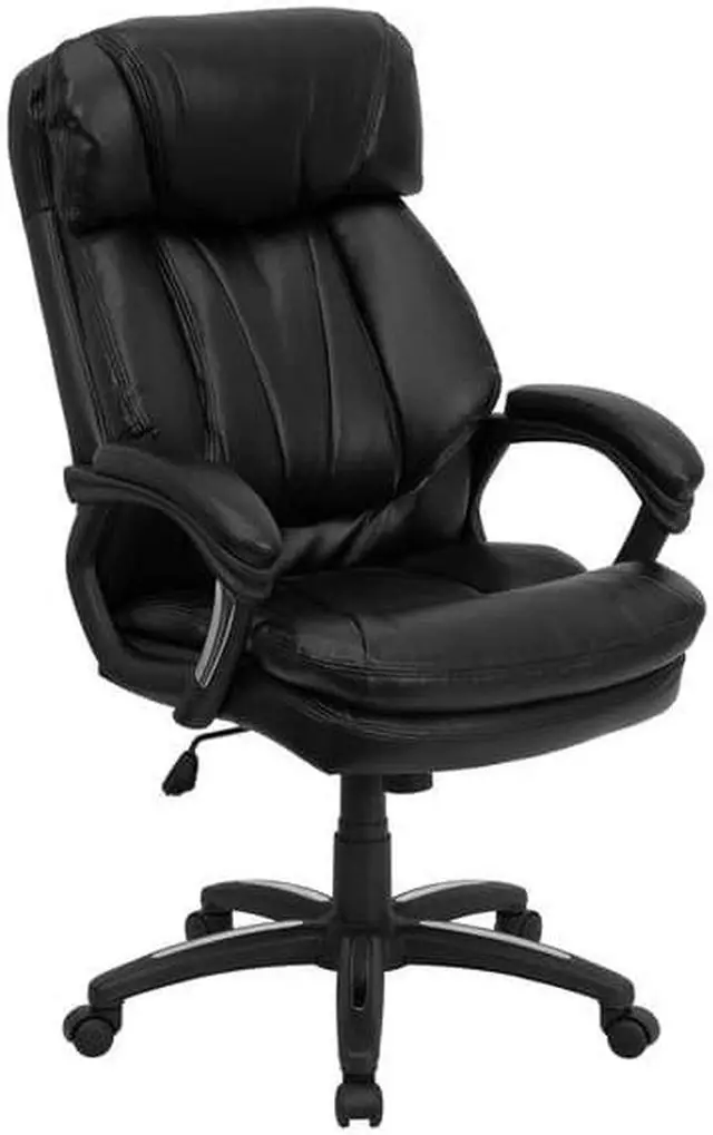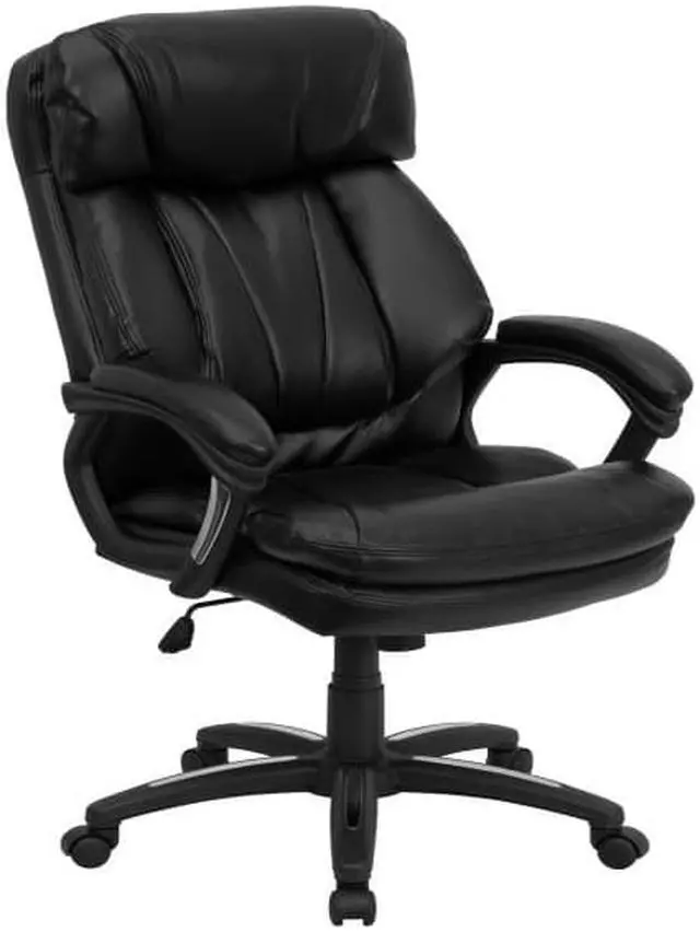 Designed with the user in mind, this chair incorporates a well-padded seat and back, an ergonomically curved wing back, and padded arms to give you a great sitting experience as well as an aesthetic complement to your decor. Finding a comfortable chair is essential when sitting for long periods at a time. Having the support of an ergonomic office chair may help promote good posture and reduce future back problems or pain. High back office chairs have backs extending to the upper back for greater support. The high back design relieves tension in the lower back, preventing long term strain. The generously padded headrest will take the pressure off of your neck while leaning back. Chair easily swivels 360 degrees to get the maximum use of your workspace without strain. The pneumatic adjustment lever will allow you to easily adjust the seat to your desired height. This executive chair features chrome accents on the arms and base for a contemporary look.