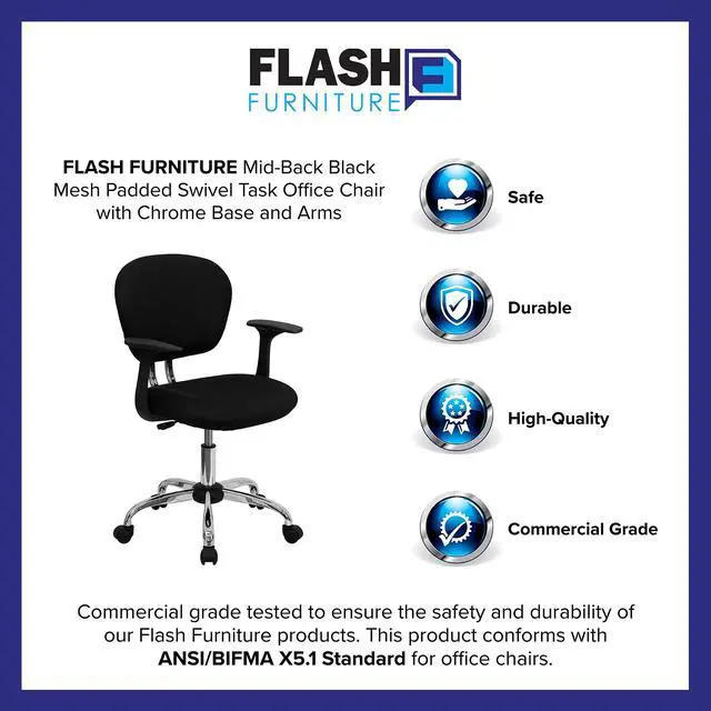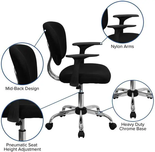 The benefits of a comfortable chair are many and should never be underestimated. This mesh task chair supports you when you're working long hours to get the job done, in your dorm, at the office and at home. Mesh task chairs offer modern seating for your business or home office. This comfy mid-back office chair supports your mid-to-upper back region. The swivel seat is padded with 2" of foam and covered with mesh upholstery. Raise and lower the seat using the pneumatic seat height adjustment lever, conveniently located below the seat.