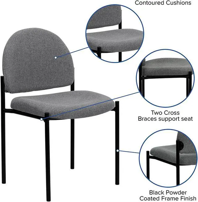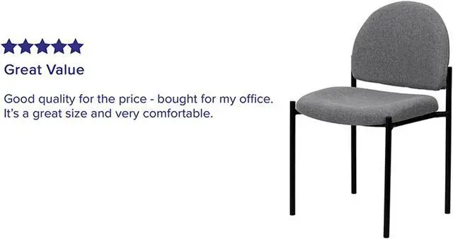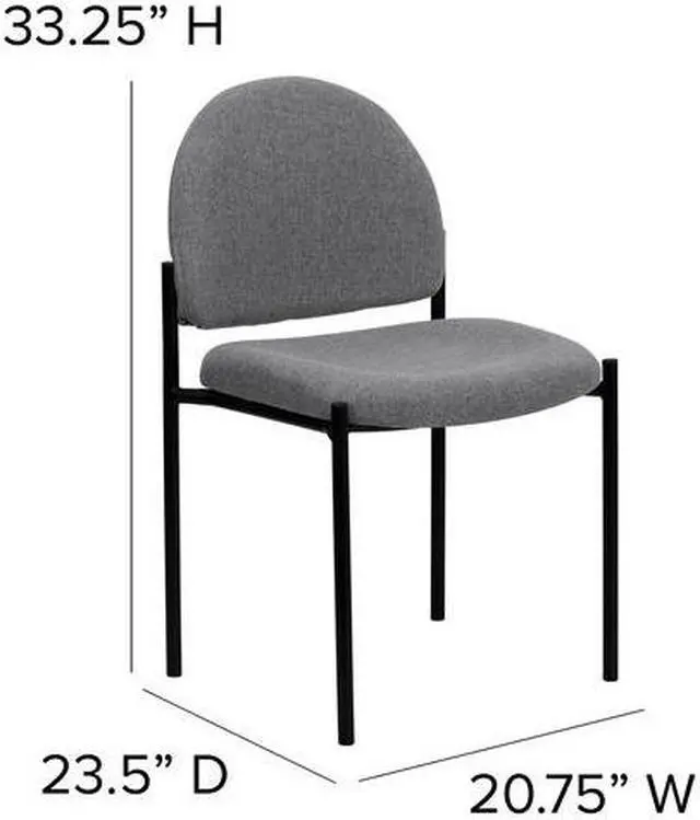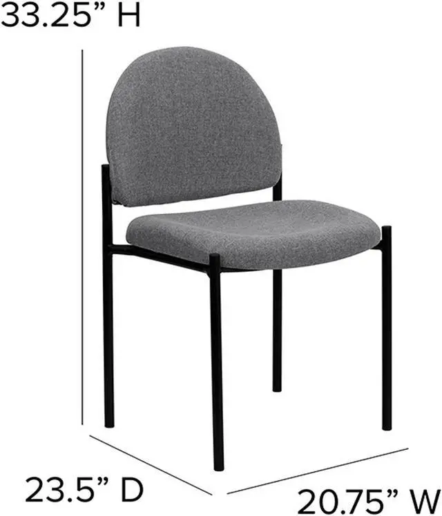 If you must keep clients waiting, give them somewhere they can relax with this side reception chair. Ideal for anyone who wants an extra seating option in their home or for an event, this comfortable chair will bring a big presence to your lobby area without overcrowding your space. The sturdy steel tubing comes in a stylish black finish that fits neatly into most decor settings. This chair features a thick padded, contoured seat and protective floor glides. A powder-coated tubular steel frame ensures durable, long-lasting use. For additional convenience, up to five chairs can be stacked on top of each other, allowing for expedited clean-up or set-up times as well as convenient storage when not in use.Product Dimension-20.75"W x 23.5"D x 33.25"H