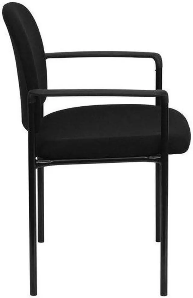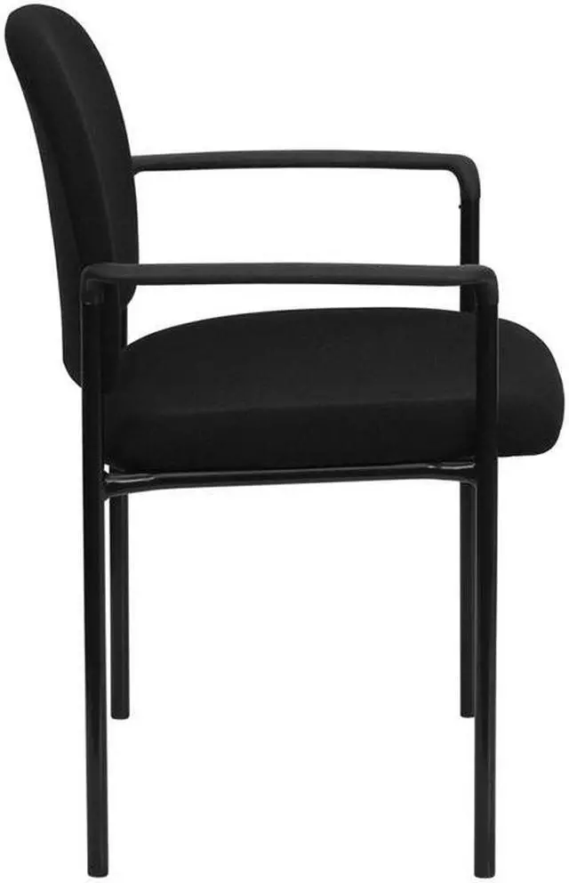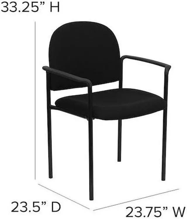 Popular in build with a seamless, ergonomic design this Navy Fabric Stackable Steel Side Reception Chair with Arms is a must have. This chair is ideal for anyone who wants an extra seating option in their home or for an event, and will bring a big presence to your lobby area without overcrowding your space. The sturdy steel tubing comes in a stylish black finish that fits neatly into most decor settings. This stacking arm chair features a thick padded, contoured seat and protective floor glides. For additional convenience, up to five chairs can be stacked on top of each other, allowing for expedited clean-up or set-up times as well as convenient storage when not in use.
