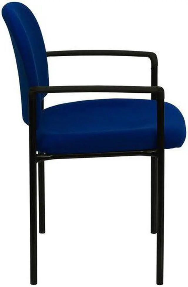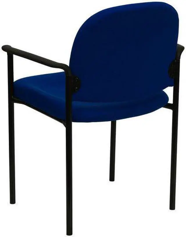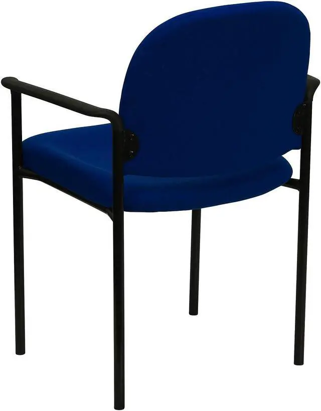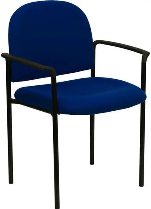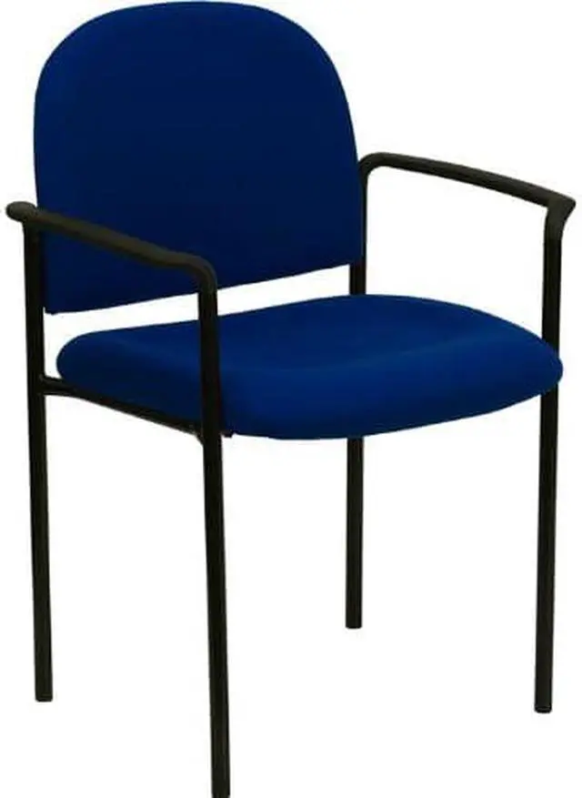Popular in build with a seamless, ergonomic design this Navy Fabric Stackable Steel Side Reception Chair with Arms is a must have. This chair is ideal for anyone who wants an extra seating option in their home or for an event, and will bring a big presence to your lobby area without overcrowding your space. The sturdy steel tubing comes in a stylish Navy finish that fits neatly into most decor settings. This stacking arm chair features a thick padded, contoured seat and protective floor glides. For additional convenience, up to five chairs can be stacked on top of each other, allowing for expedited clean-up or set-up times as well as convenient storage when not in use. Add multiple chairs in your reception area, salon or doctor's office to make visitor's comfortable while waiting to be seen. Guest Side Arm Chair for common areas. Navy Fabric Upholstery. Ergonomic Seat Cushion with CAL 117 Fire Retardant Foam. Two Cross Braces support seat. Sturdy Steel .75" Tubular Frame. Navy Powder Coated Frame Finish. Stacking guest chair for business or home office, retail store, salon, school.