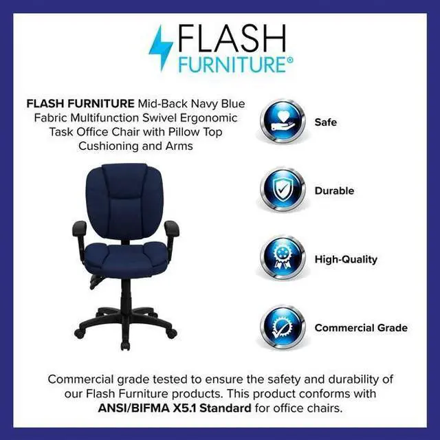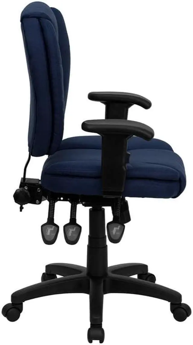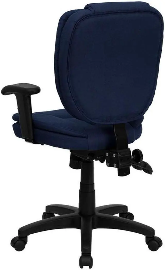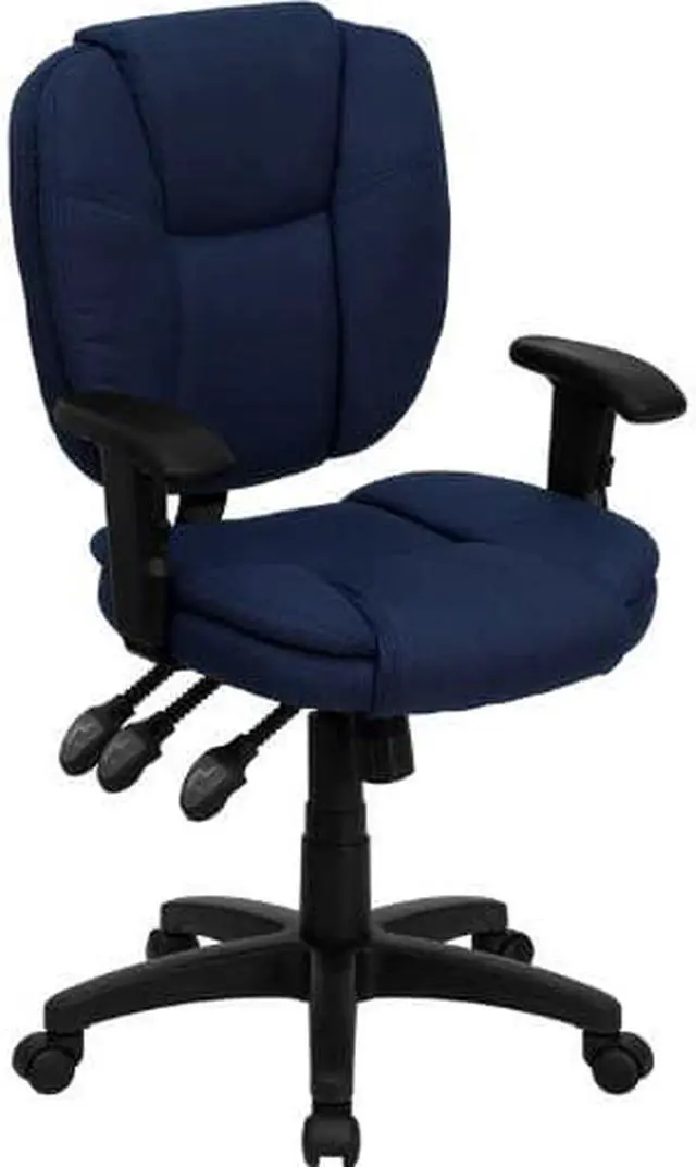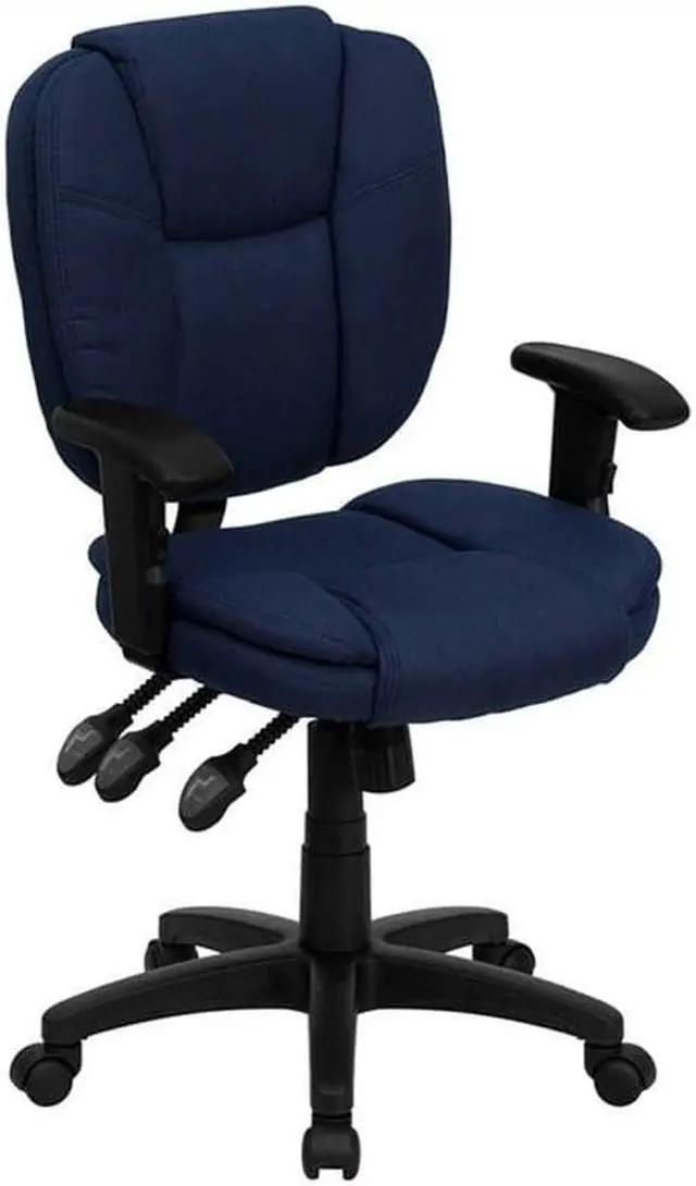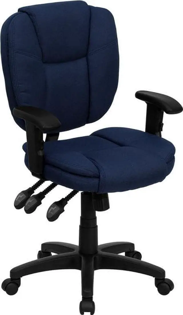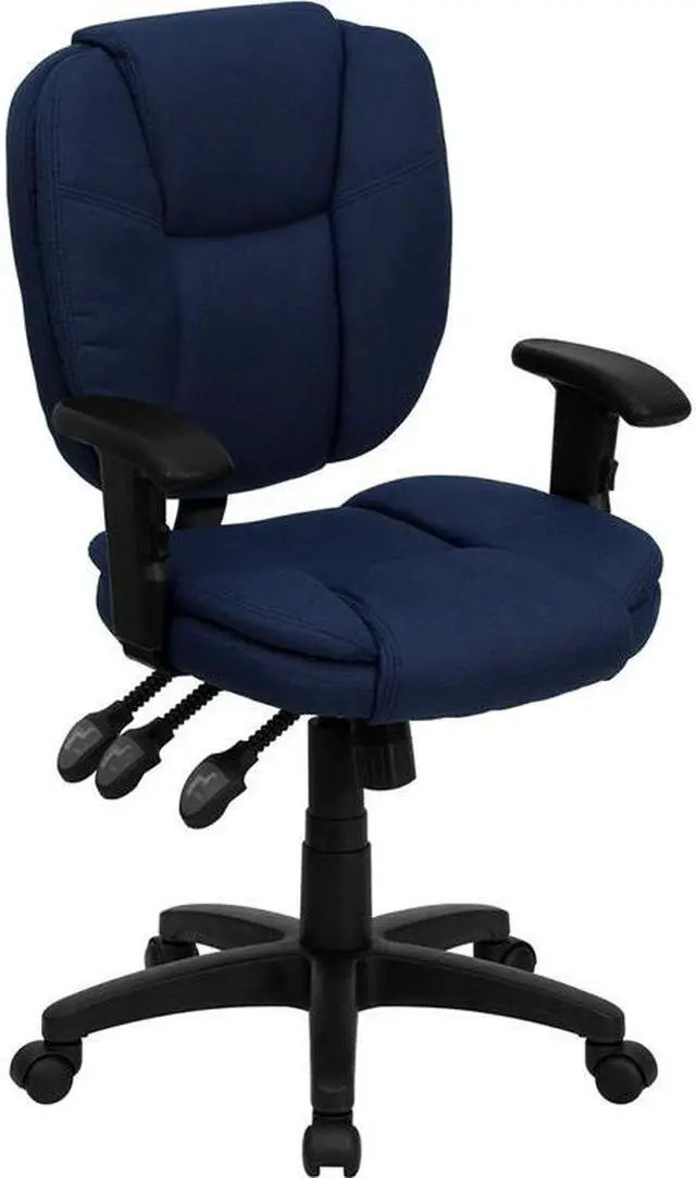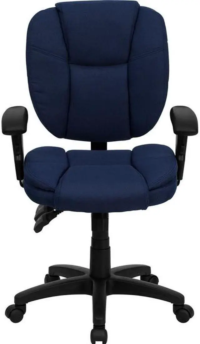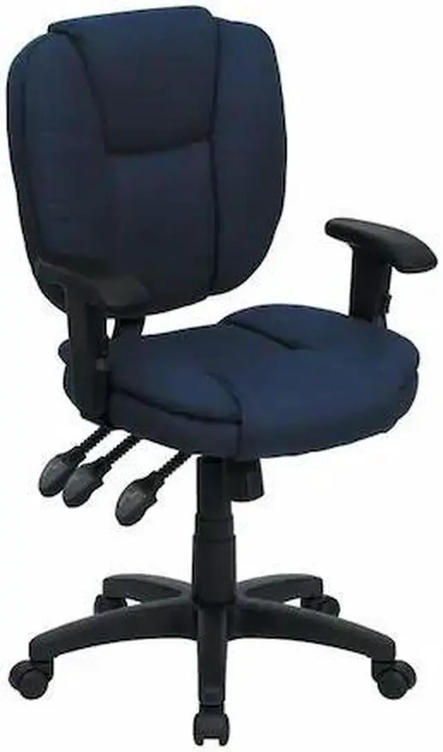 This multi-functional office chair will give you an edge on comfort with its design and adjusting capabilities. This office chair features fabric upholstery to comfortably get you through your work day or to keep you comfortable while browsing the internet. The contoured seat dissipates pressure points for greater comfort. A mid-back office chair offers support to the mid-to-upper back region. The locking back angle adjustment lever changes the angle of your torso to reduce disc pressure. The locking synchro tilt control allows the chair's back and seat to recline at different rates, increasing the angle between your torso and thighs.