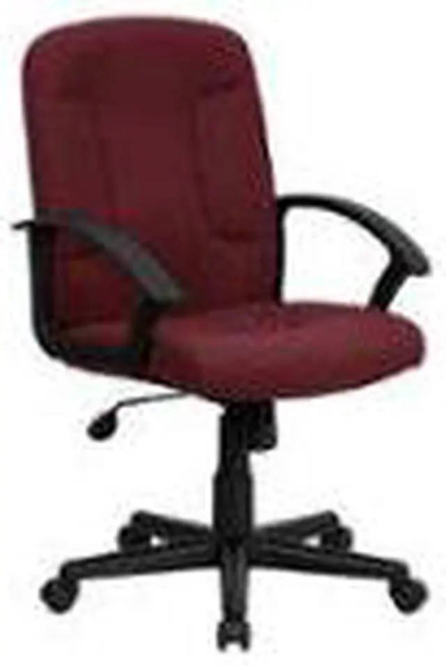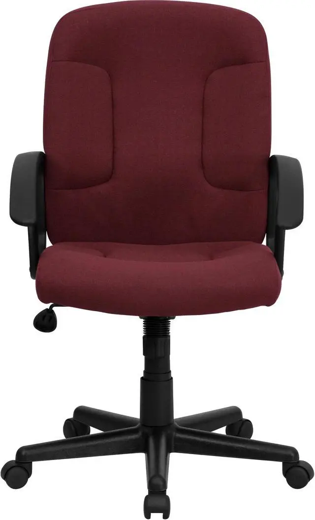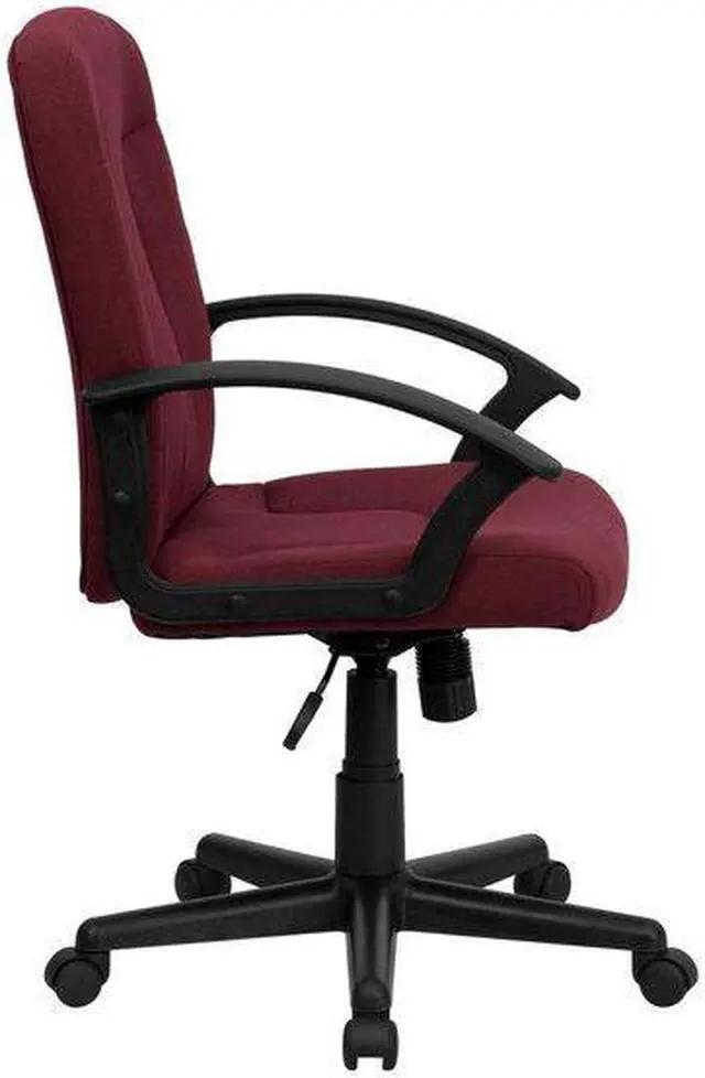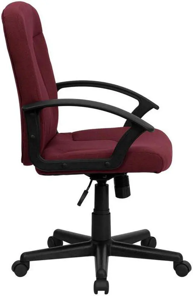 Mid-Back Burgundy Fabric Executive Swivel Chair with Nylon Arms