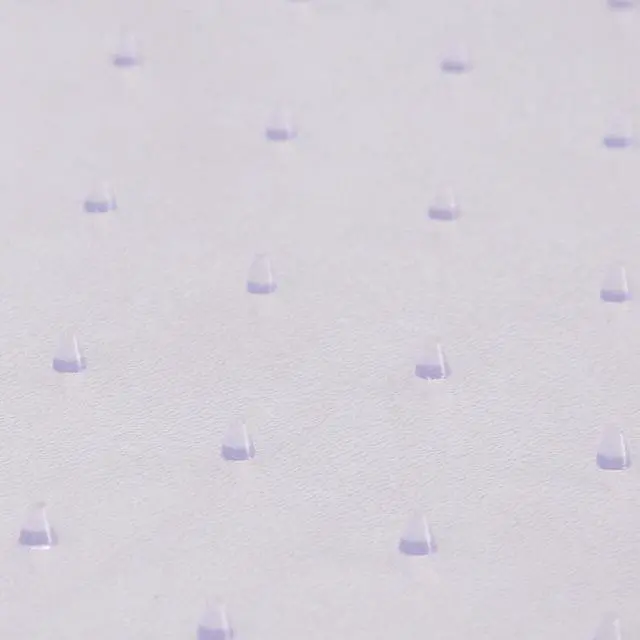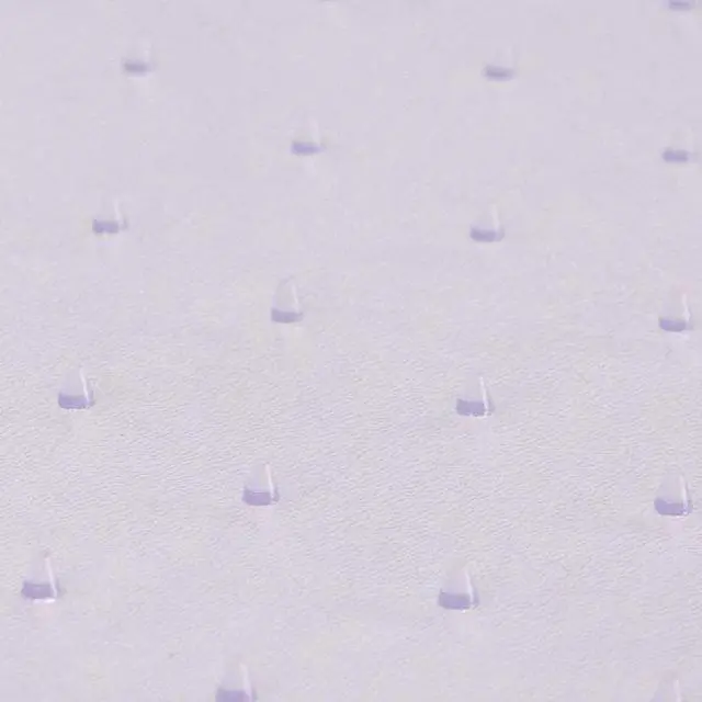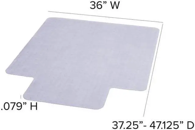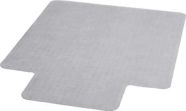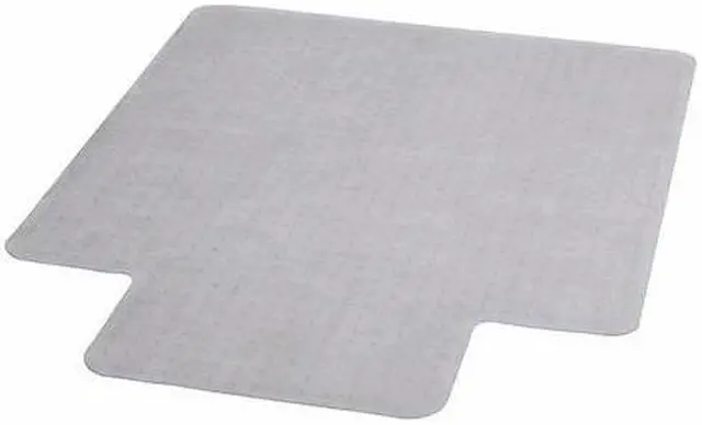 Move around easily in your carpeted workspace with this clear vinyl, commercial grade chair mat that will prevent carpet wear caused by chair casters. It features a scuff and slip resistant top surface for durability and safety. The underside has a gripper back to firmly anchor the chair mat on low pile carpet, protecting your carpet from spills and damage. The mat includes a protruding lip to protect the carpet under the desk and allow the chair to roll even when it's all the way under the desk.