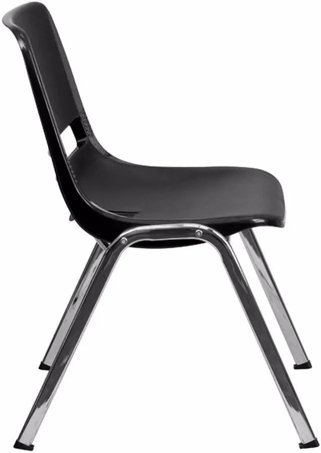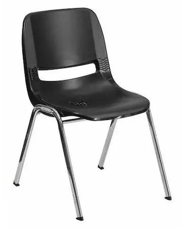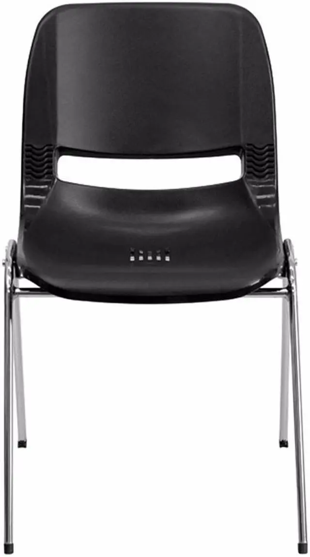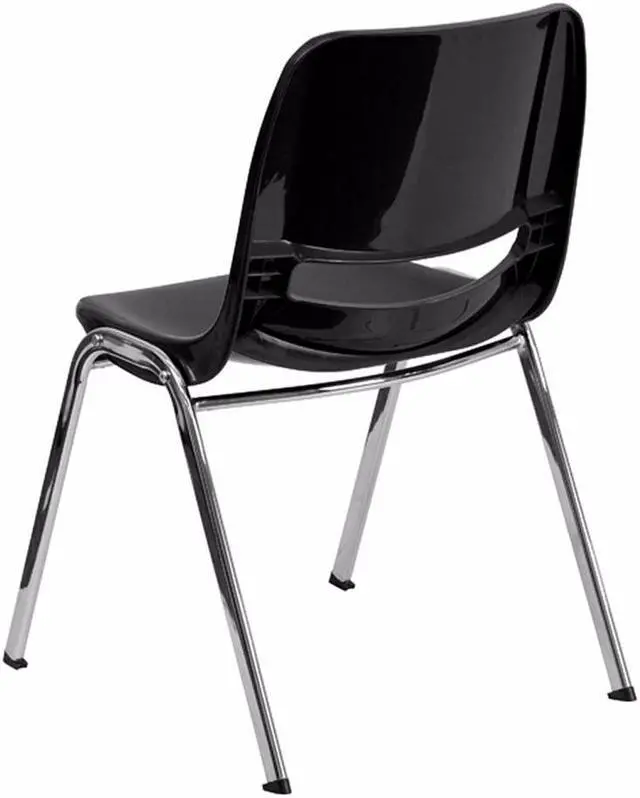 HERCULES Series 880 lb. Capacity Black Ergonomic Shell Stack Chair with Chrome Frame and 18'' Seat Height