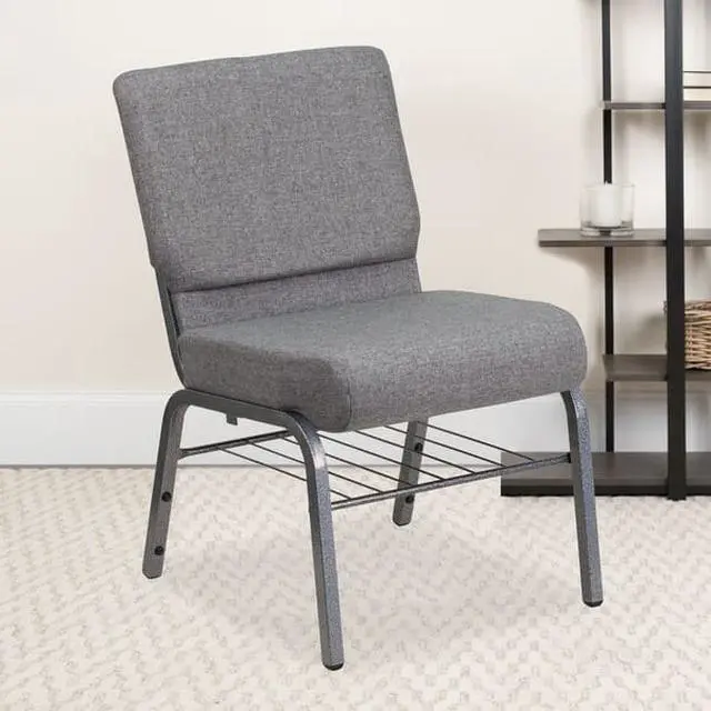 This beautiful church chair will keep your guests supremely comfortable whether you're hosting an all-day seminar, serving a 10 course meal or delivering your most inspirational sermon. This chair offers an advantage over pew seating with the flexibility of creating different seating configurations. The chair's cushioned back and 4" thick seat are generously padded and covered in durable fabric upholstery. The seat has a waterfall edge that reduces pressure on your attendees' legs. A convenient book pouch on the back of the chair keeps seminar materials, bibles or hymn books readily available and a book rack under the seat gives everyone a place to store their personal belongings.