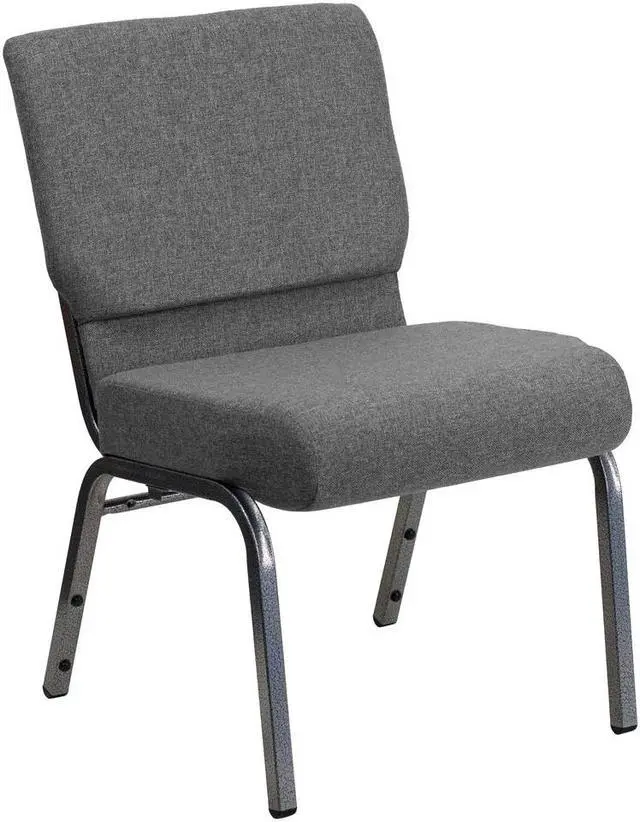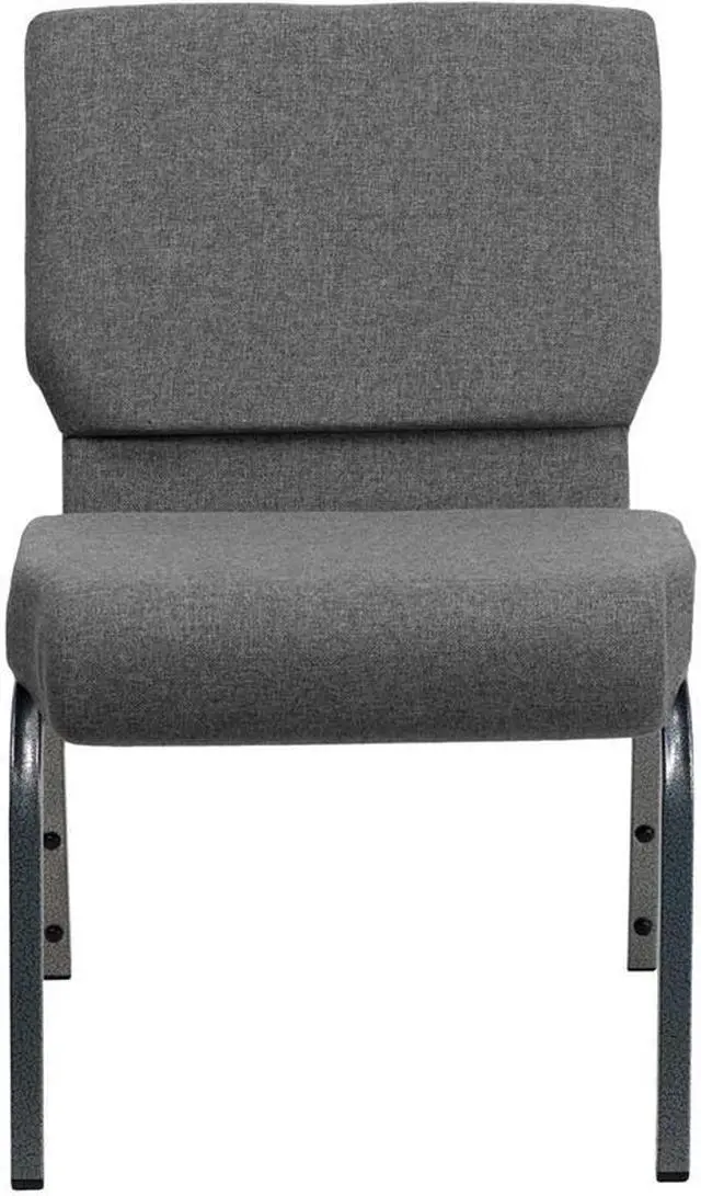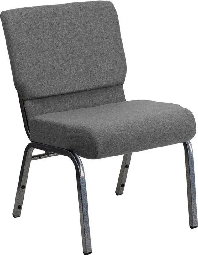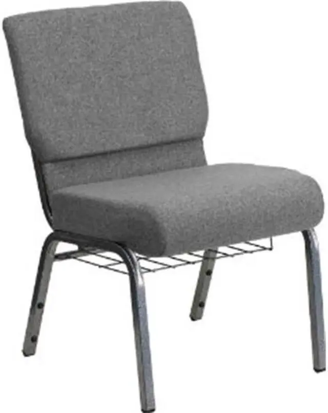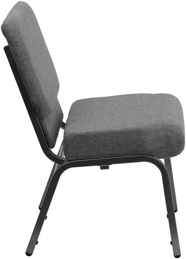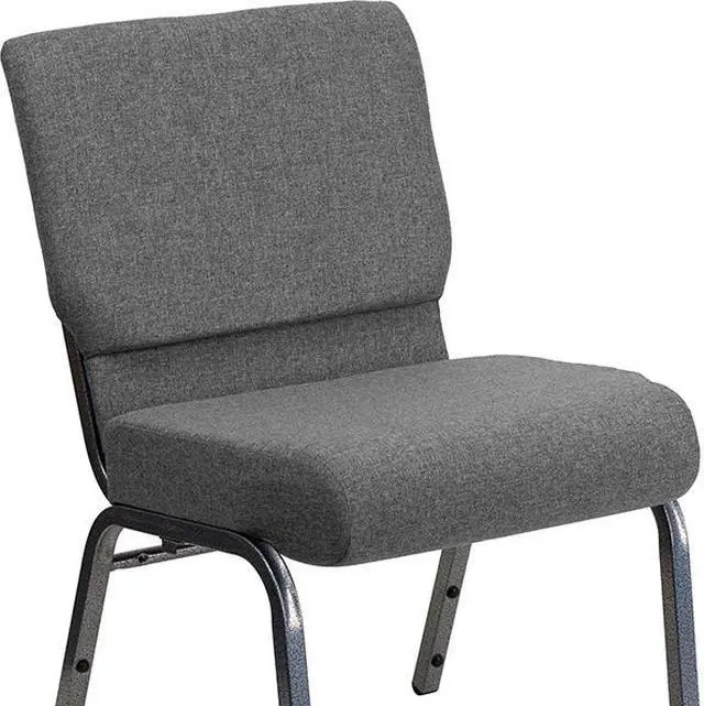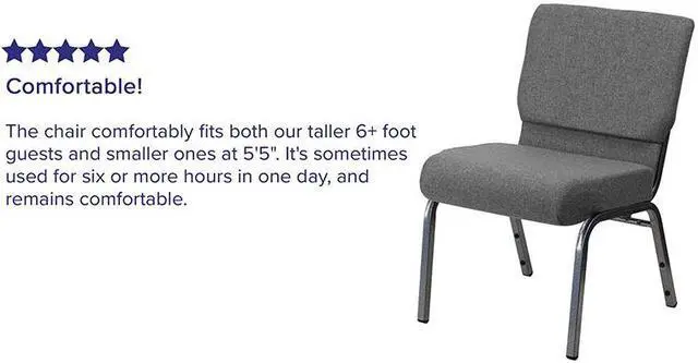This beautiful church chair will keep your guests supremely comfortable whether you're hosting an all-day seminar, serving a 10 course meal or delivering your most inspirational sermon. This chair offers an advantage over pew seating with the flexibility of creating different seating configurations. The chair's cushioned back and 4" thick seat are generously padded and covered in durable fabric upholstery. The seat has a waterfall edge that reduces pressure on your attendees' legs. A convenient book pouch on the back of the chair keeps seminar materials, bibles or hymn books readily available. Built-in ganging brackets connect your chairs and maintain nice, straight rows. Its sturdy 16 gauge steel, gold vein frame, with gracefully angled legs, has been tested to hold up to 800 pounds and plastic rocker glides protect your floor by sliding smoothly when you need to move the chair. This Church Chair is an excellent option for hotel lobbies, banquet halls, conference facilities and worship centers.Product Dimension-21"W x 25"D x 33"H
