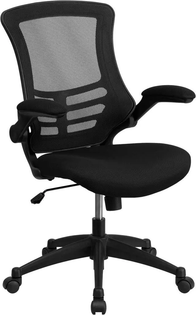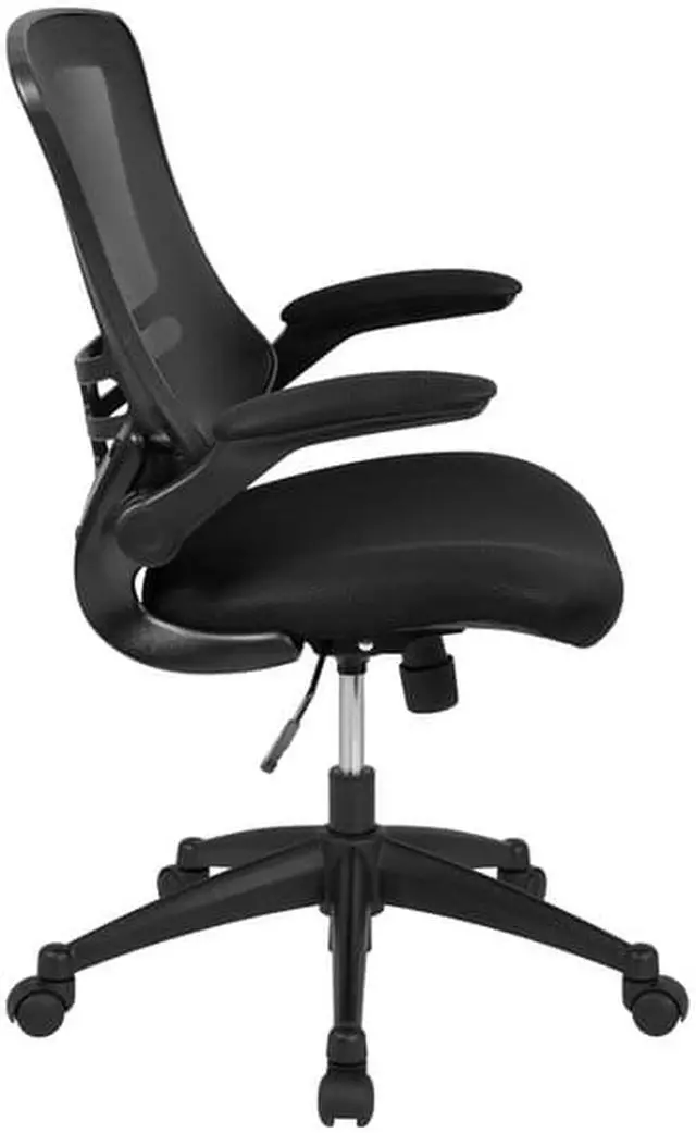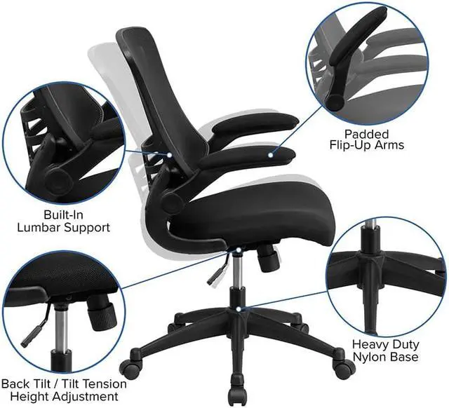 Invest wisely in the most important part of your business, your employees and yourself. This mesh desk chair provides exceptional support to the hard-working professionals in your office. Discomfort can play a major role in disrupting productivity among your staff. This ergonomic mesh back office chair features transparent, breathable mesh across the back allowing air to circulate to keep you cool. Built-in lumbar support improves your posture and helps prevent back strain and muscle fatigue. Padded flip-up armrests relieves pressure from your shoulders and neck and rotate 90 degrees out of the way so you can move this office mesh chair closer to your desk.