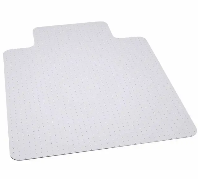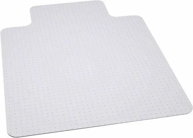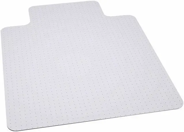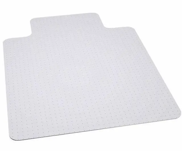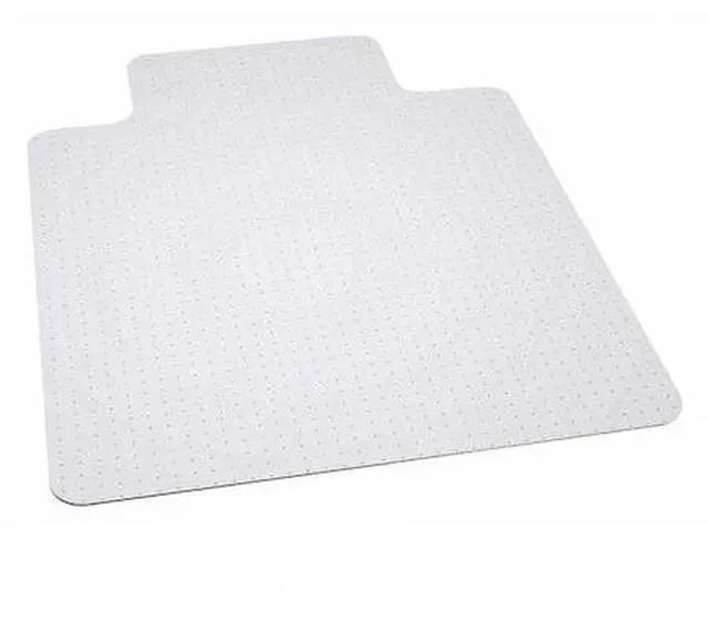 Move around easily in your carpeted workspace with this Big & Tall clear vinyl, commercial grade chair mat that will prevent carpet wear caused by chair casters. Rated to hold up to 400 lbs., this mat is ideal for shift work. It features a scuff and slip resistant top surface for durability and safety. The underside has a gripper back to firmly anchor the chair mat on medium to high pile carpet, protecting your carpet from spills and damage. The mat includes a protruding lip to protect the carpet under the desk and allow the chair to roll even when it's all the way under the desk. Manufactured to meet GREENGUARD Gold specifications for low chemical emissions, this mat is an ideal choice for carpeted areas.Product Dimension-45"W x 53"D x 0.157"H