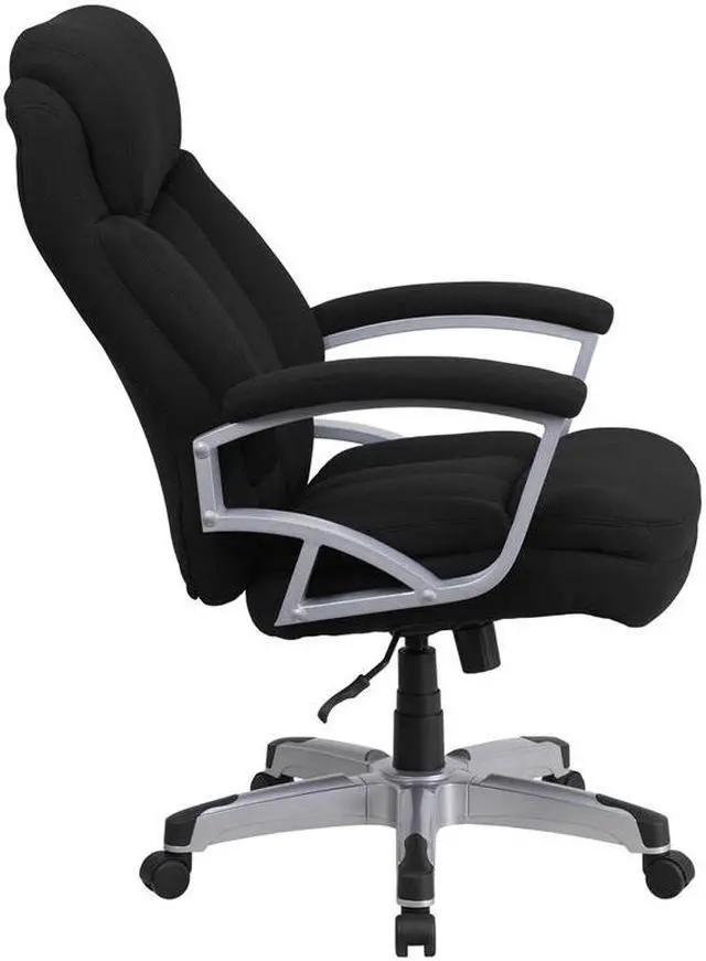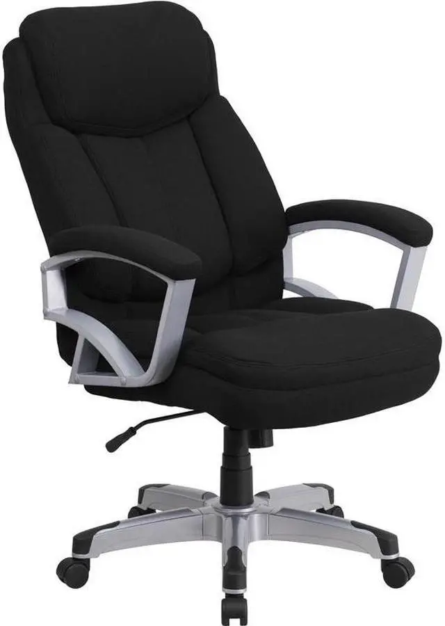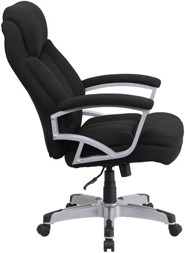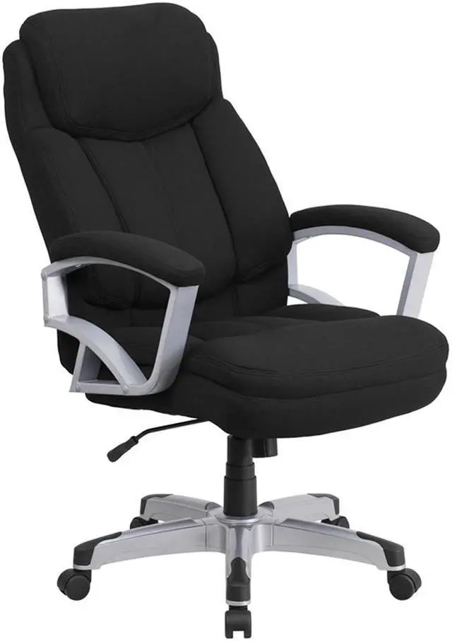 Finding a comfortable chair is essential when sitting for long periods at a time. Big & Tall office chairs are designed to accommodate larger and taller body types. This chair has been tested to hold a capacity of up to 500 lbs., offering a broader seat and back width. Covered in black fabric upholstery, this chair will lend sophistication to your workspace. The tilt lock mechanism rocks/tilts the chair and locks in an upright position while the tilt tension adjustment knob adjusts the chair's backward tilt resistance. High back office chairs have backs extending to the upper back for greater support.