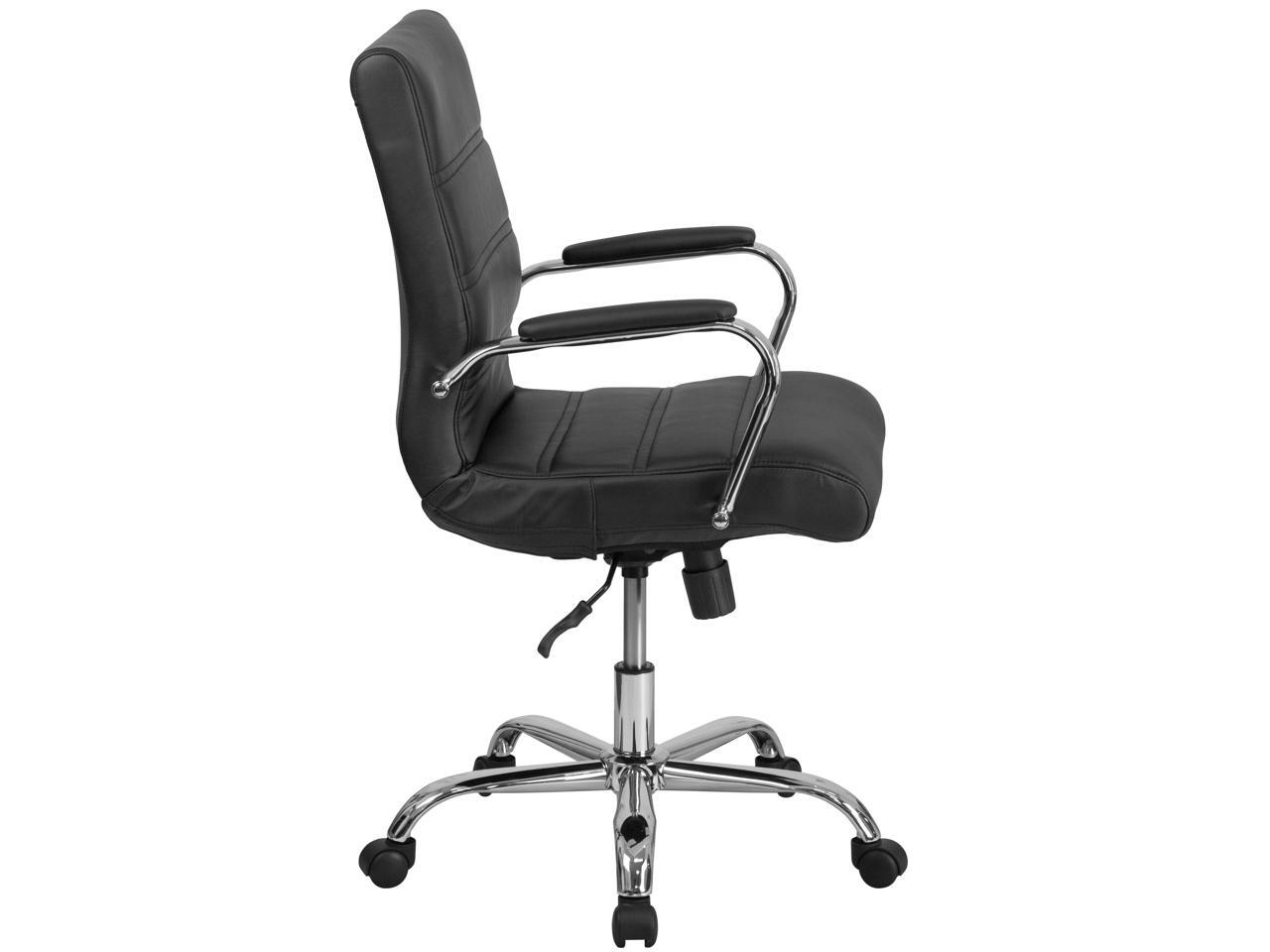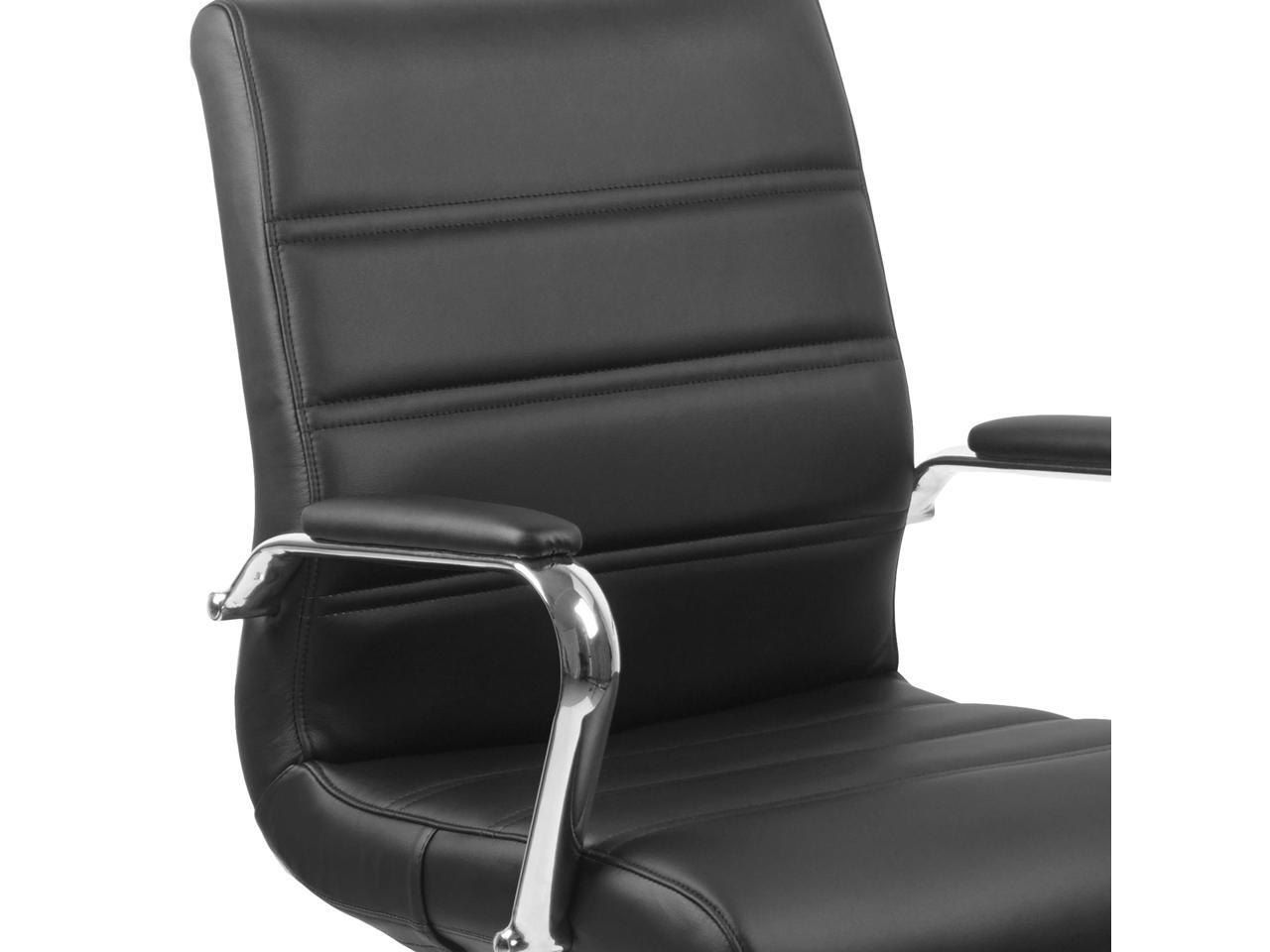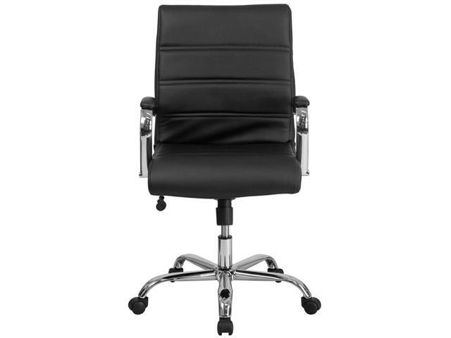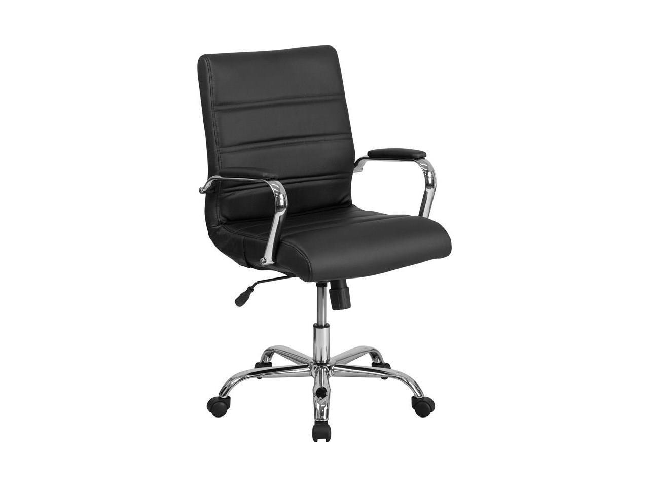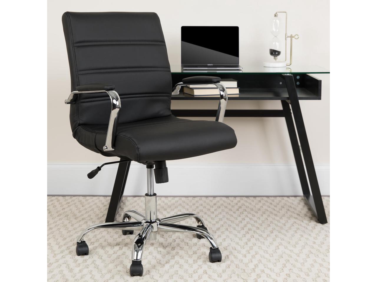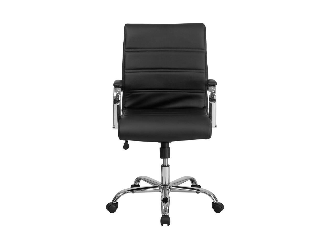 Mid-Back Black Leather Executive Swivel Chair with Chrome Base and Arms
