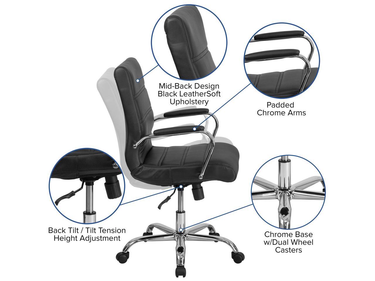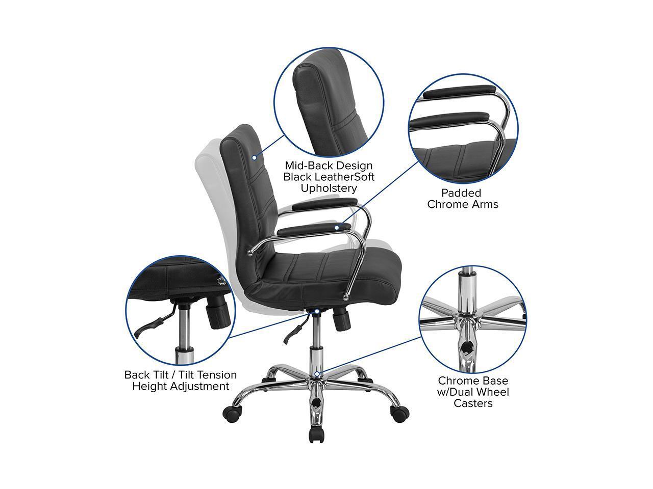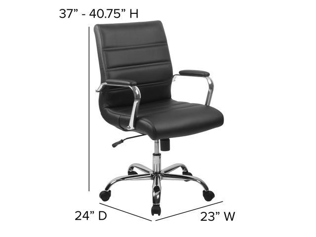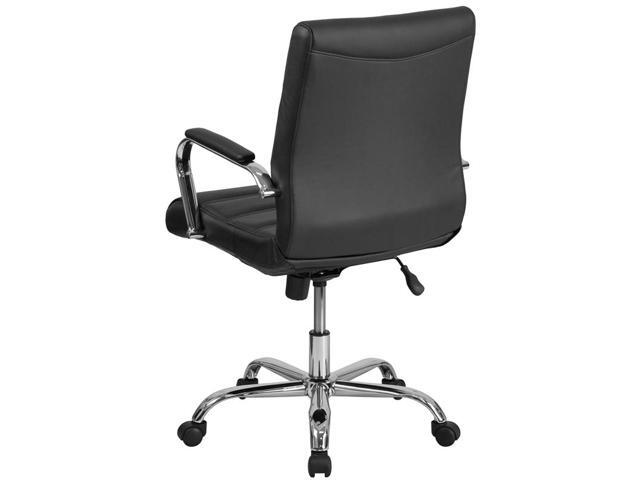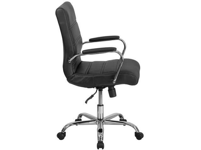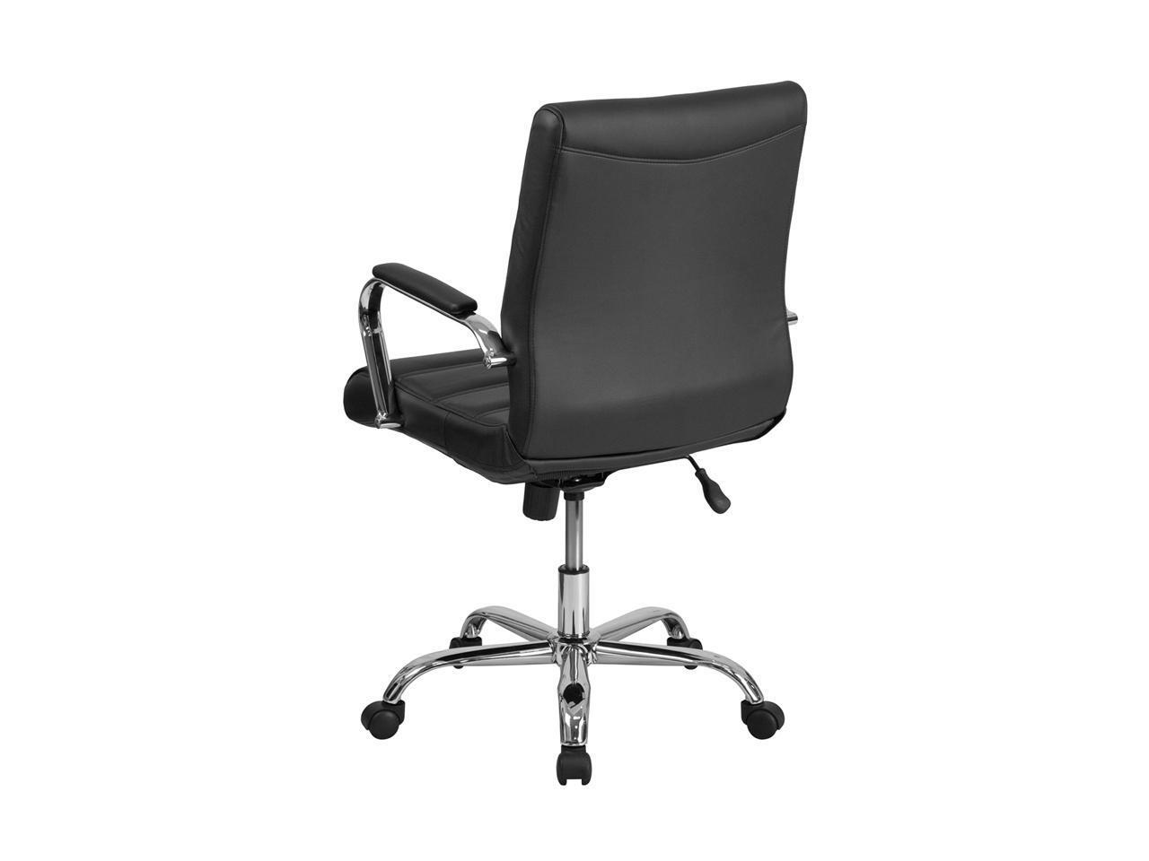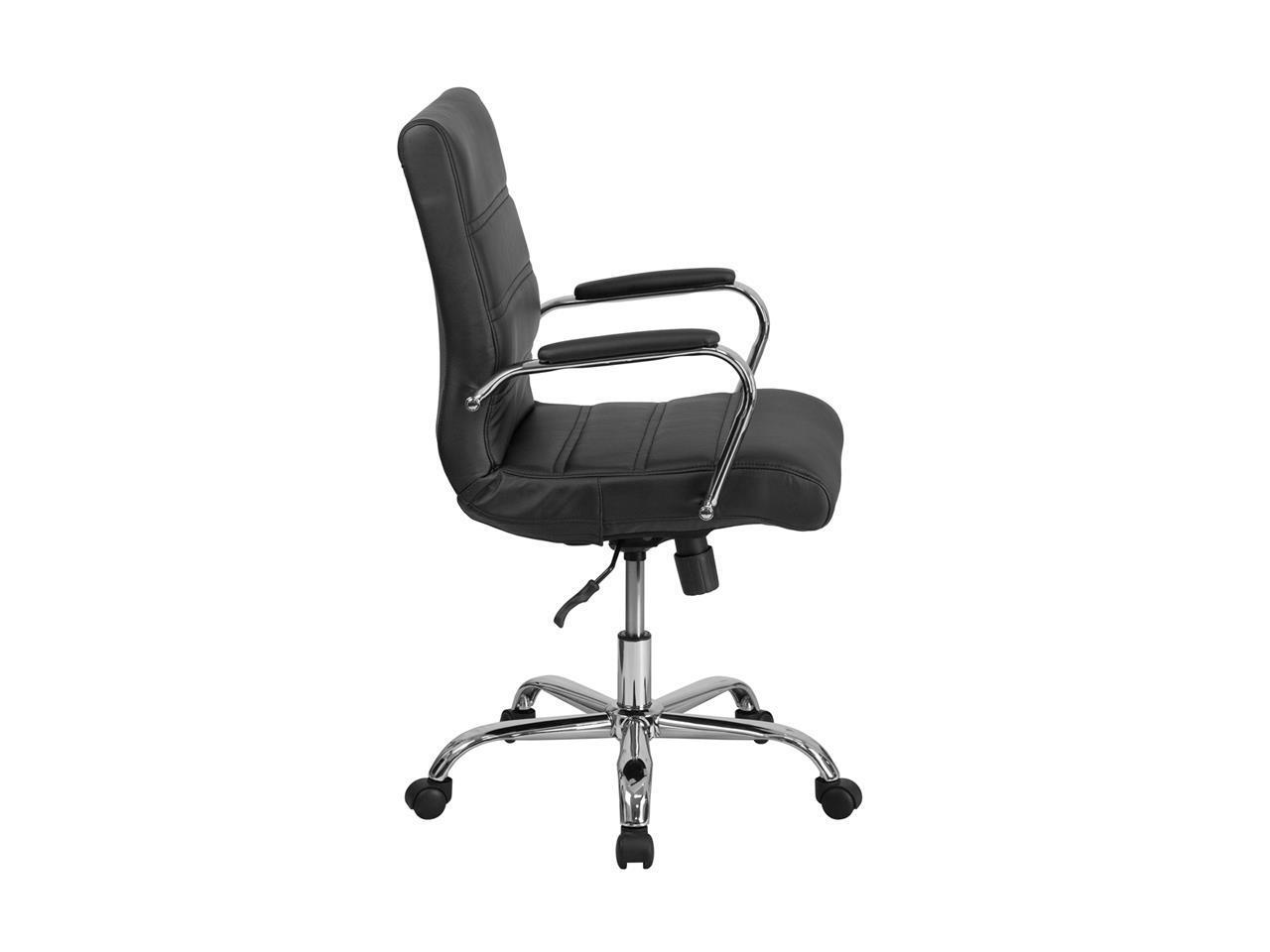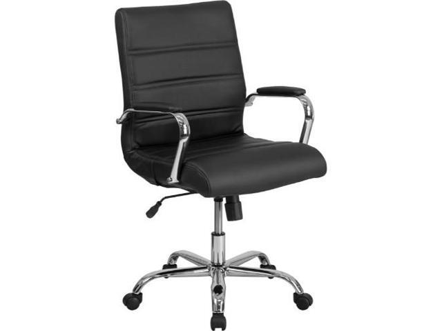 Mid-Back Black Leather Executive Swivel Chair with Chrome Base and Arms