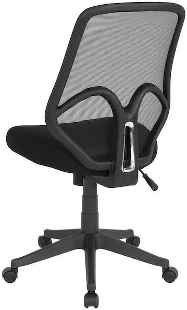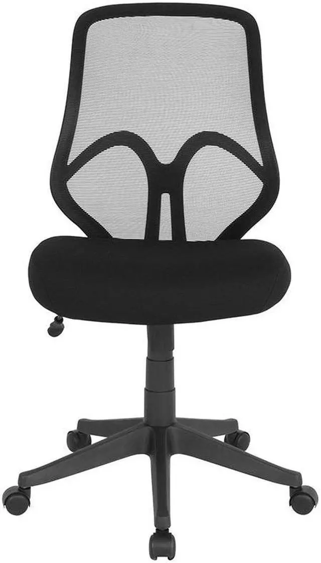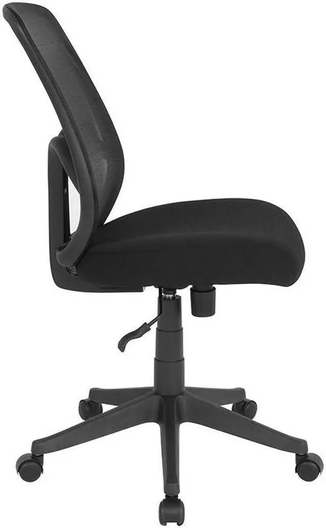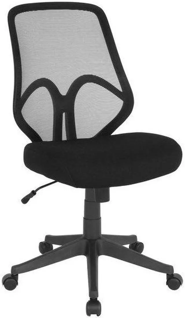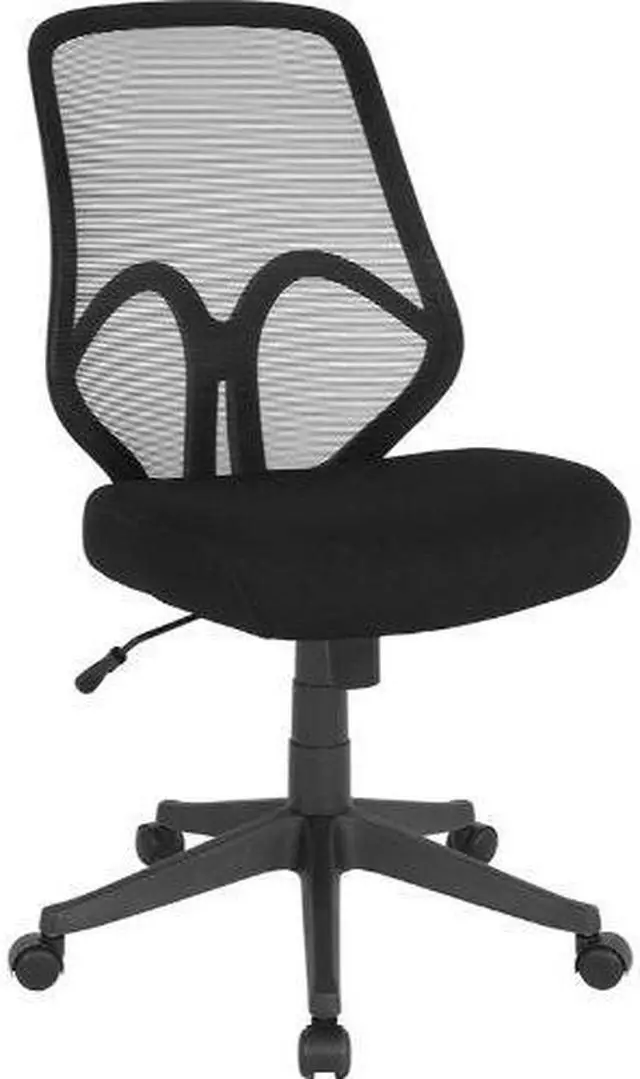 Breathe new life into your office, dorm or home office with this comfortable High Back Mesh Chair. The transparent mesh back allows air to circulate, keeping you cool no matter how high the pressure gets. The swivel seat is foam padded and has a waterfall front for leg comfort. Built-in lumbar support helps prevent back strain and muscle fatigue. Raise and lower the seat using the pneumatic seat height adjustment lever, conveniently located below the seat. The heavy-duty, nylon base with dual wheel casters makes it easy to roll across the floor.