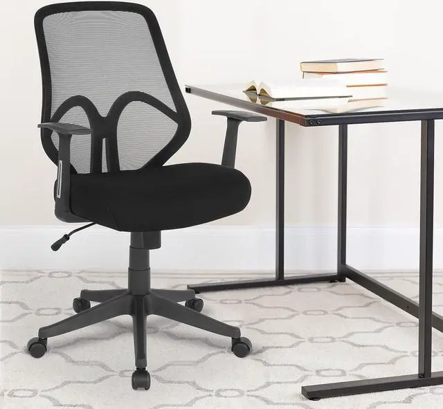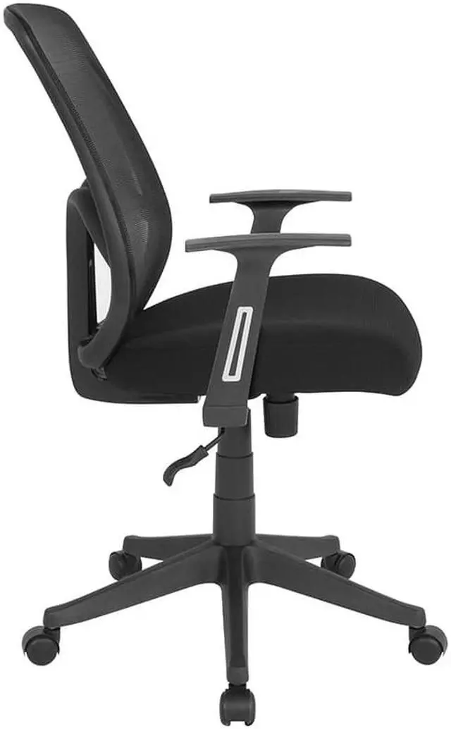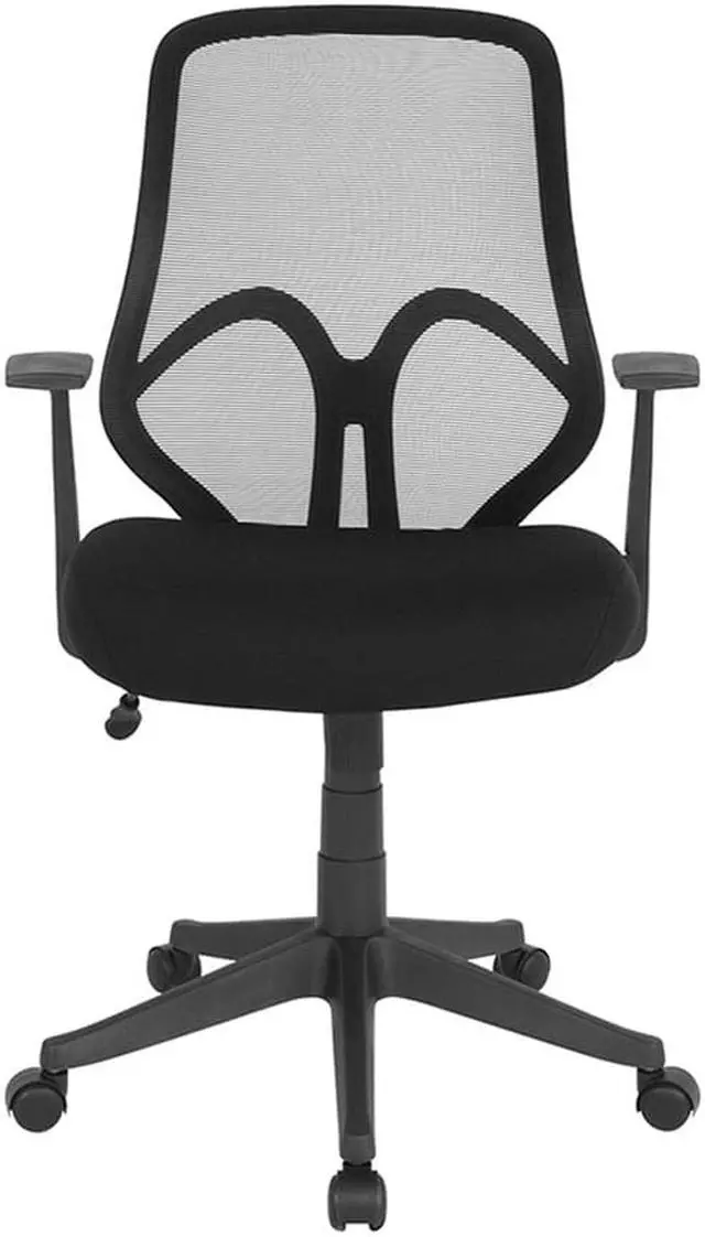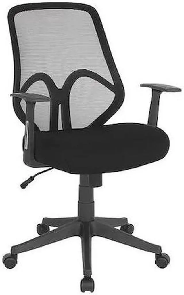Breathe new life into your office, dorm or home office with this comfortable High Back Mesh Chair. The transparent mesh back allows air to circulate, keeping you cool no matter how high the pressure gets. The swivel seat is foam padded and has a waterfall front for leg comfort. Built-in lumbar support helps prevent back strain and muscle fatigue. Raise and lower the seat using the pneumatic seat height adjustment lever, conveniently located below the seat. The heavy-duty, nylon base with dual wheel casters makes it easy to roll across the floor. Whether you're studying, browsing or on a tight deadline, this stylish chair will keep you cool and comfortable throughout your busy day.