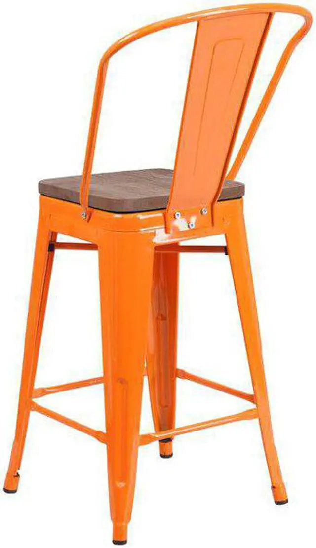 FLASH FURNITURE 4-CH-31320-24GB-OR-WD-GG Orange Metal Counter Stool,24"