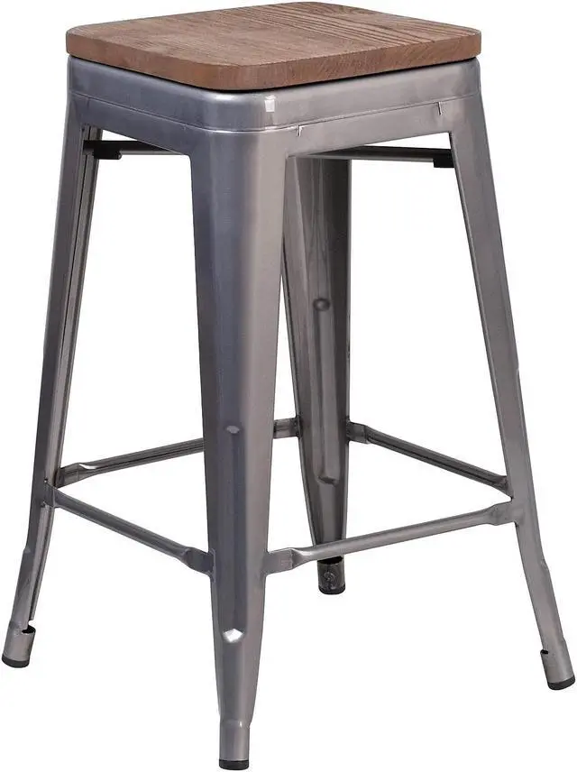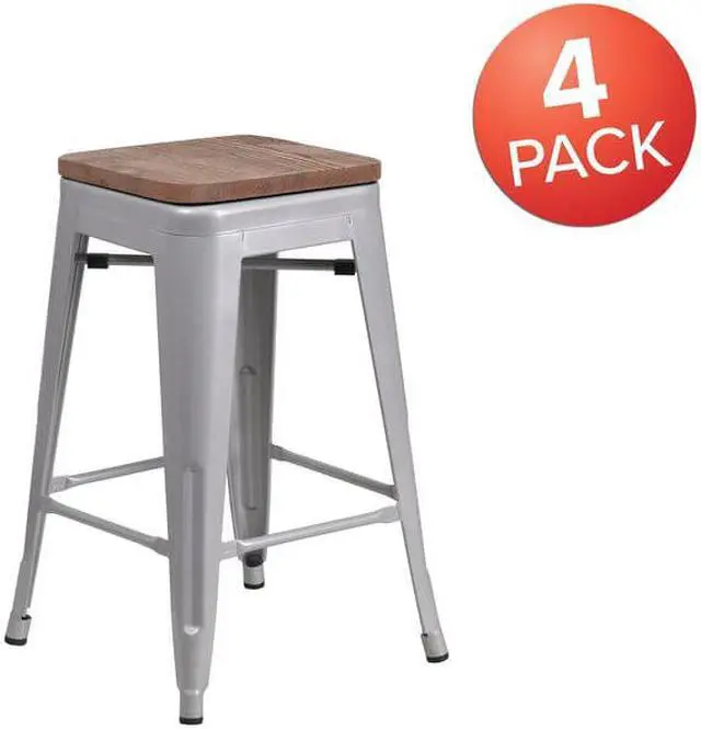 FLASH FURNITURE 4-CH-31320-24-SIL-WD-GG Silver Metal Counter Stool,24"