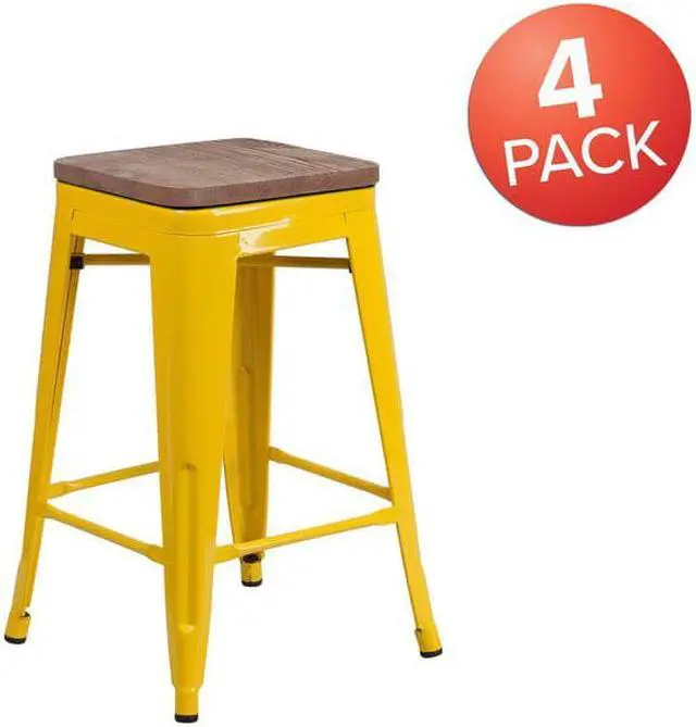 FLASH FURNITURE 4-CH-31320-24-YL-WD-GG Yellow Metal Counter Stool,24"