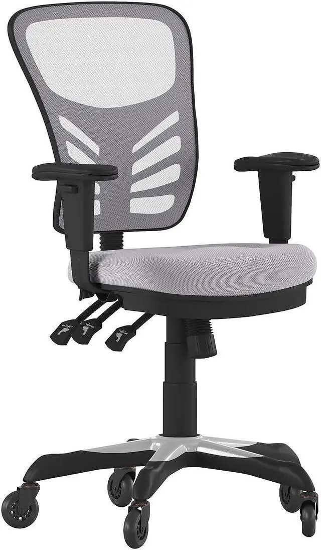 Add sleek mobility and modern style to any workspace with this updated task office chair. This chair comes fully loaded including updated polyurethane roller style wheels to help you take charge of your day. With a ventilated mesh back, you'll have air circulating to your back giving you sweet relief during warm summer days. Make room for this modern beauty, upgrade everyone's chair in the office, granting everyone the ability to have a customized seating experience. Standout features include: an adjustable back height knob; back angle paddle; tilt control paddle; curved back with substantial lumbar support; contour padded swivel seat; adjustable height arms provide relief to your neck and shoulders. Get a supportive ergonomic chair that can keep up with long 8 to 10 hour shifts with ease. This chair is so comfortable it can also be used as a gaming chair in an intense game against online players.