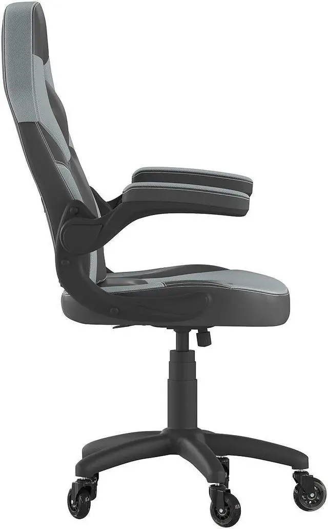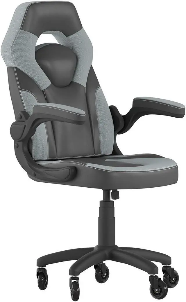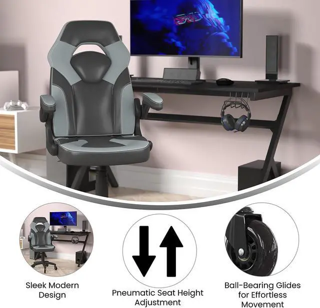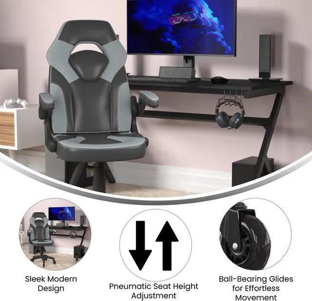 Great style combined with high customization make this ergonomic racing chair a must have to keep up with the demands of marathon gaming sessions. This high back LeatherSoft upholstered racing style game chair with upgraded, transparent, roller style ball-bearing wheels will outperform your couch with healthier benefits. The ergonomic design of this computer chair offers generous padding with a wing style back to cradle your torso. Padded arms provide a comfortable resting position and relieve pressure from your shoulders and neck. If you're playing on your computer and want to get closer, the arms flip backward. The tilt lock mechanism underneath the seat locks in an upright position when you no longer want to lean back. You need a dedicated gaming chair to take your gaming to new heights, whether you have followers who watch you on a streaming service or like to interact with other gamers online.