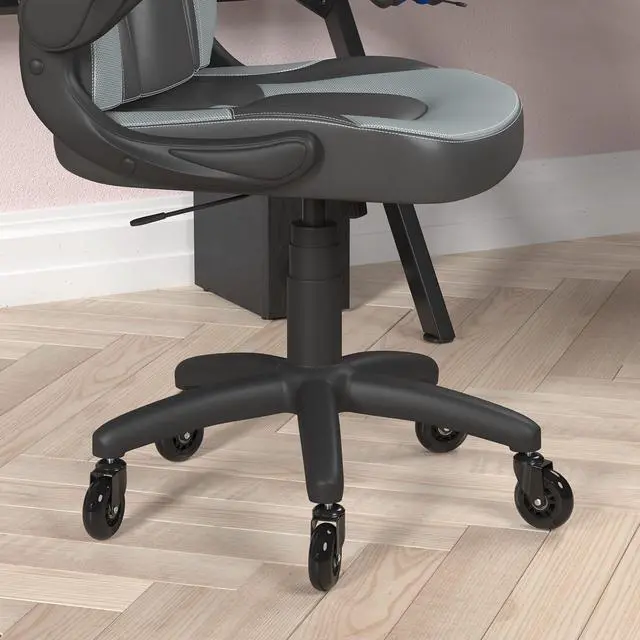 Add this gaming chair with ball-bearing rubber tires to your office, home office, or gamer's lair.