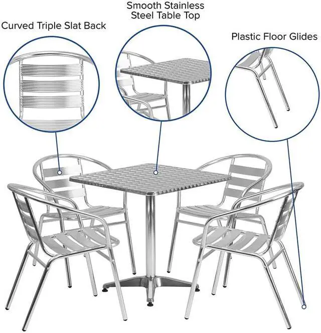 27.5'' Square Aluminum Indoor-Outdoor Table Set with 4 Slat Back Chairs