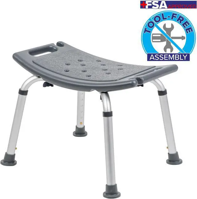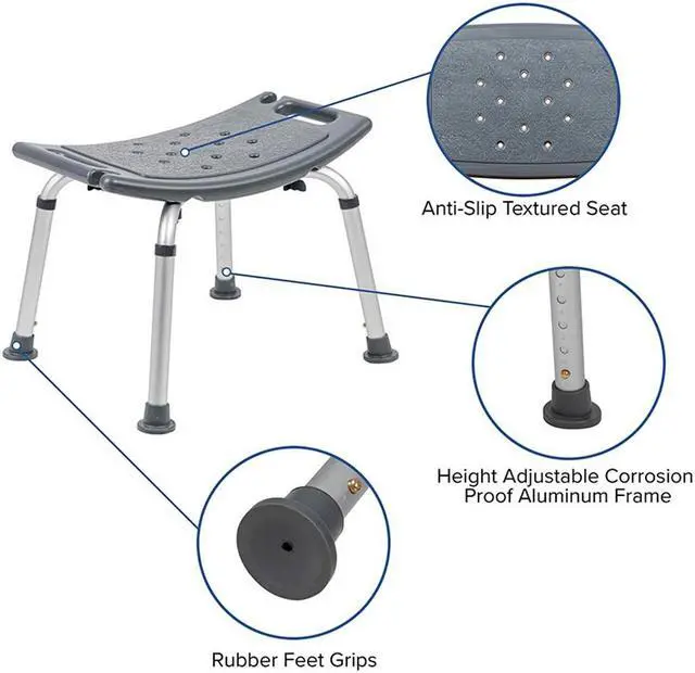 If you can't stand for long periods at a time, a shower stool is what you need to make bathing and showering more enjoyable. No longer will you have to rush or be in pain with the aid of a shower seat. This medical shower chair is relied on in hospitals, independent living centers, nursing homes and is well-suited for your home bathroom. Get back your independence with a shower bench that adjusts to your desired height to clean comfortably. This bath bench benefits the elderly, pregnant women in their third trimester who have trouble bending and post-operatives. Take your stool with you on-the-go with no tools to setup and takedown. After your shower this versatile bathroom stool can be used while you lotion and get dressed. Clean your bath chair regularly to minimize buildup with a water based cleaner.