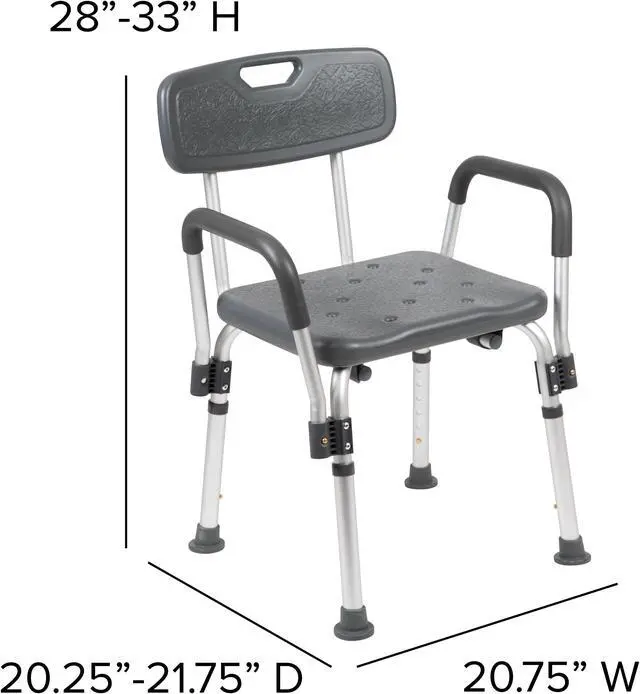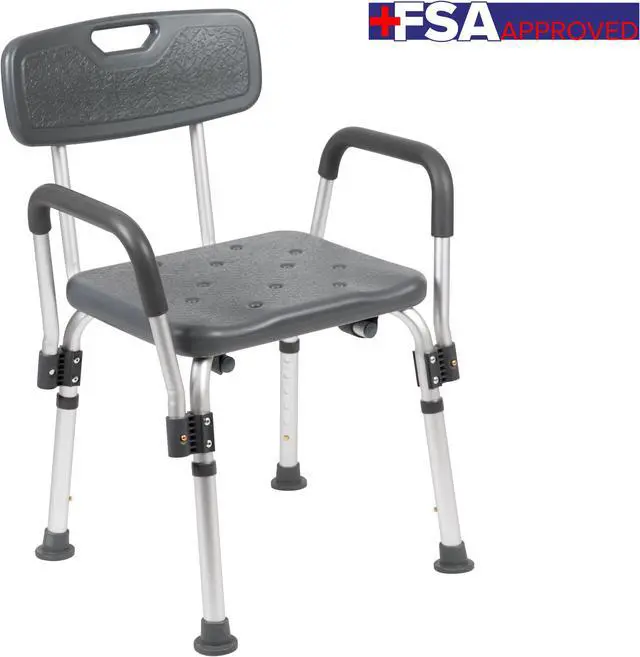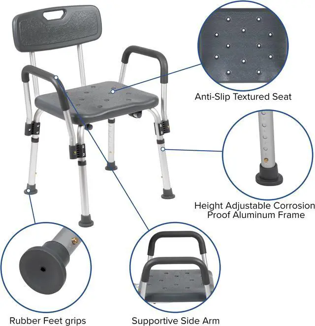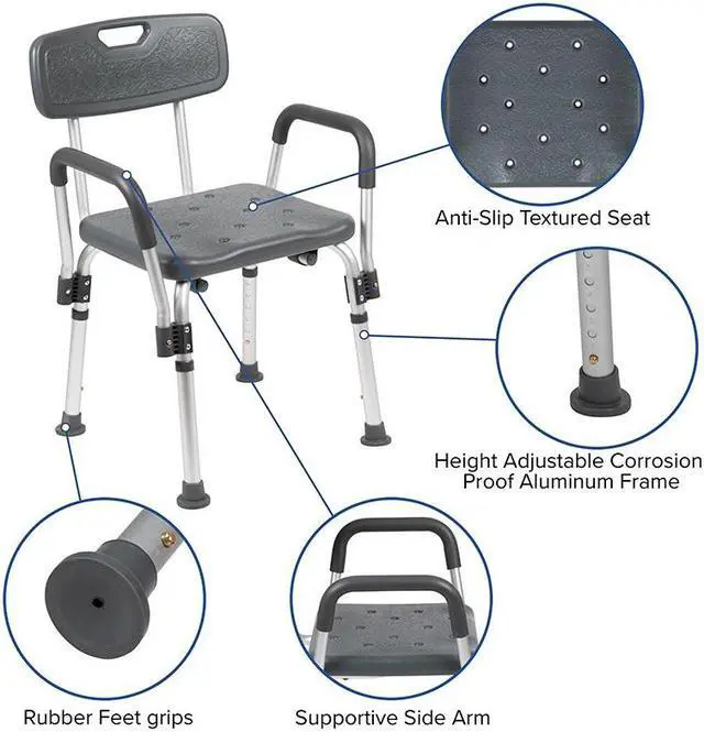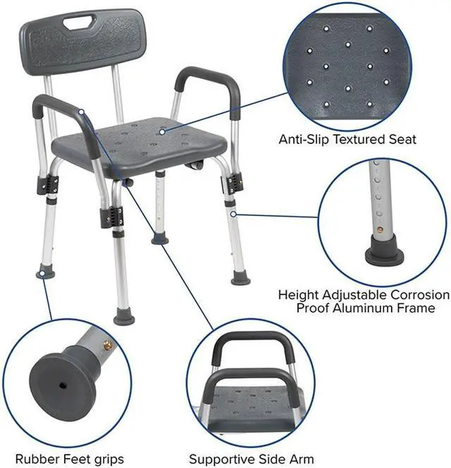 Don't let mobility issues keep you from your daily upkeep, our bath chair is designed for your safety with arms to help bear your weight. The non-slip seat includes drainage holes to drain soapy water. Minimize buildup, clean with a water based cleaner. The backrest is depth adjustable and removable to turn your bath chair into a bath stool. The medical grade shower chair has an FDA approval for use in healthcare facilities. If you live alone and need the extra assurance to reduce the risk of falling, this free-standing shower chair will bring peace of mind to you and your loved ones. Gain your independence back with a shower chair in your home that can be used in the bathtub and then for your after-shower care routine. If you've had surgery and need assistance until you're fully mobile this bathroom chair will help you on your road to recovery.