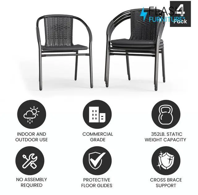SET OF 4 INDOOR/OUTDOOR RATTAN CHAIRS: Makes it easy to enjoy time with friends and family in your backyard, patio, sunroom, deck, or porch, and they also make for versatile dining chairs for outdoor restaurants and bistros