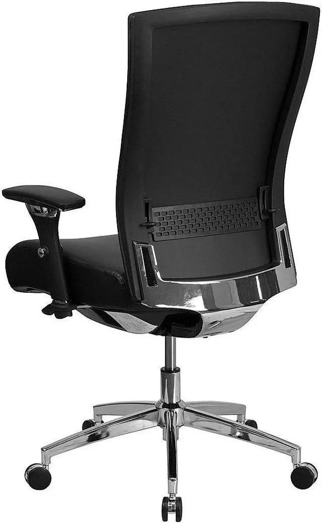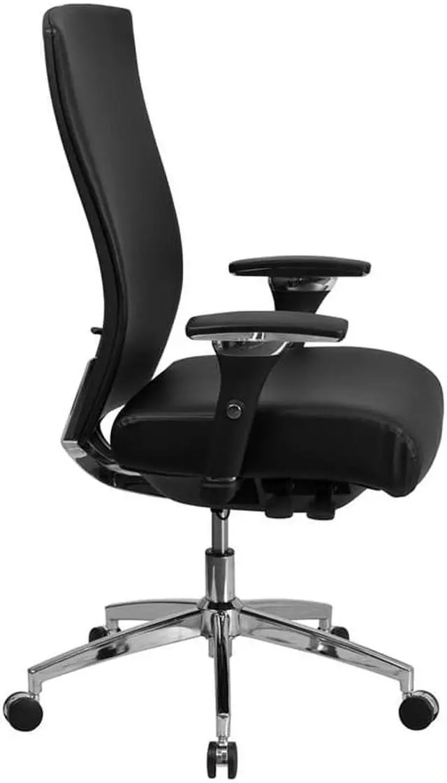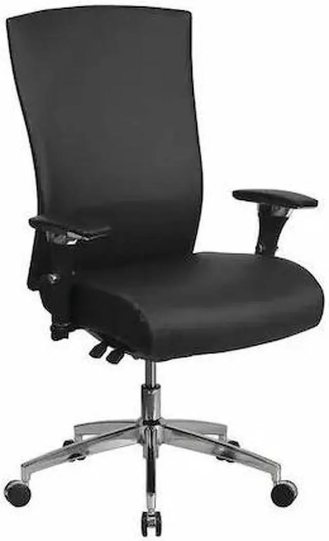 This chair was designed to meet your around the clock needs. Also known as multi-shift task chairs, a 24-hour office chair is designed for extended use or multiple-shift environments. This chair can be used in a 9-5 setting, but it was specifically designed to meet the needs of workers in 911 dispatch offices, nurses' stations, call centers, control room engineers, disc jockeys, and government personnel. This chair has been tested to hold a capacity of up to 300 lbs. Finding a comfortable chair is essential when sitting for long periods at a time. Having the support of an ergonomic office chair may help promote good posture and reduce future back problems or pain. High back office chairs have backs extending to the upper back for greater support. The high back design relieves tension in the lower back, preventing long term strain. The synchro tilt control allows the chair's back and seat to recline at different rates, increasing the angle between your torso and thighs. The seat depth adjustment changes the depth of the seat to accommodate the length of your thighs. Changing the seat depth keeps your back in contact with the backrest while avoiding pressure behind your knees. The waterfall front seat edge removes pressure from the lower legs and improves circulation. Chair easily swivels 360 degrees to get the maximum use of your workspace without strain. The pneumatic adjustment on this chair offers a very smooth adjustment range to achieve your desired height. The adjustable armrests take the pressure off the shoulders and the neck, which minimizes the risk of pain. The arm pads also pivot inward and outward for greater customization. The heavy duty chrome base is constructed to keep up with the demands of an intensive use chair. The beloved LeatherSoft upholstery will add an upscale appeal to your office.