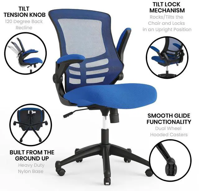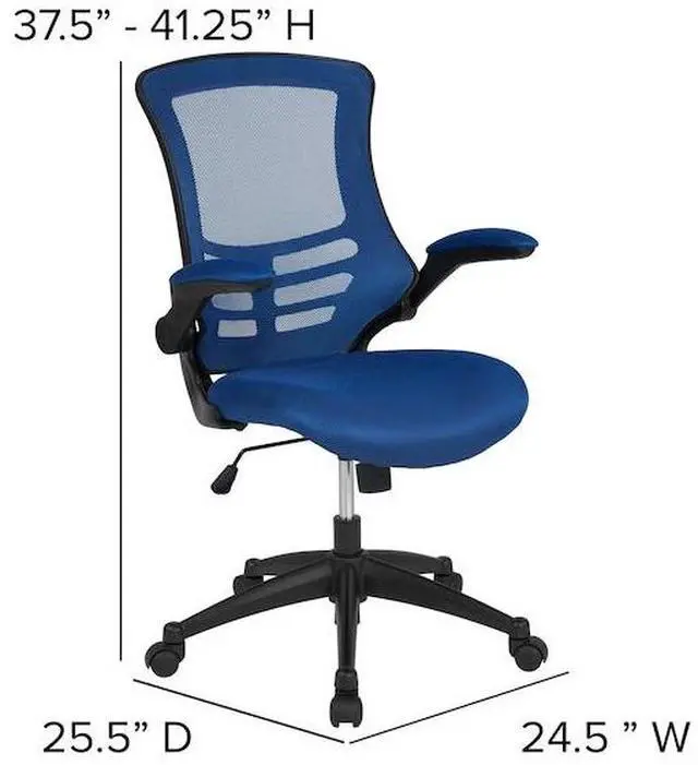 You say that you want comfort and style in your next office chair, this mesh back swivel ergonomic task office chair will exceed your needs. Beat those hot summer days with the ventilated mesh back behind you, offering up huge airflow. The curved backrest has lower lumbar support to provide you with good posture support. This well-built ergonomic office chair with flip-up arms provide relief to your shoulders and neck but is also great for users who prefer an armless design. Flip-up arms allow you to roll your chair underneath the desk without adjusting the seat height. Adjusting the seat height is easy with the pneumatic lever. Turn the tilt tension adjustment knob underneath the seat to increase or decrease the amount of force needed to rock or recline. Meeting deadlines, casual chats with colleagues and internet browsing are made easy on this contemporary swivel office chair.