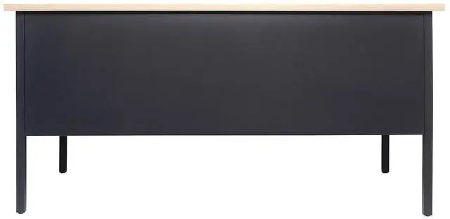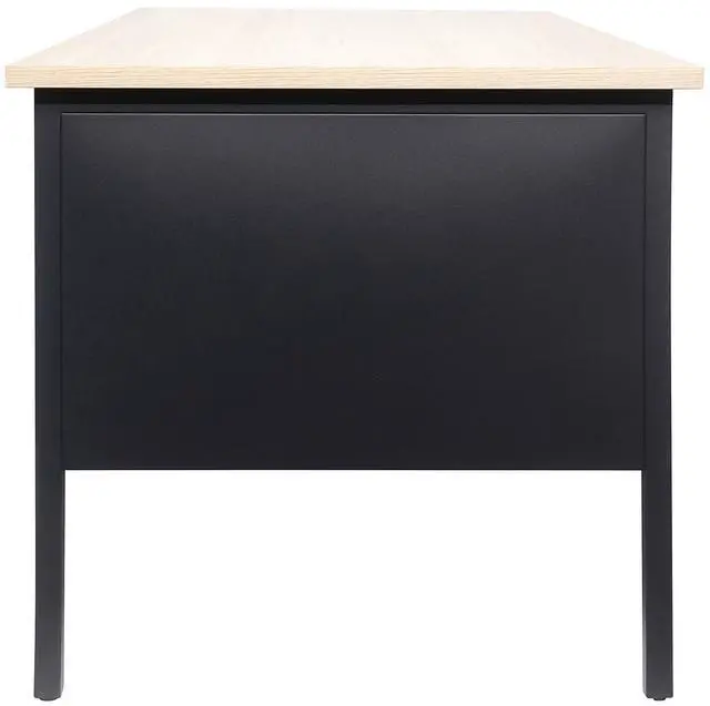 - Contemporary White Oak Laminate Desktop Finish with Black Steel Frame.