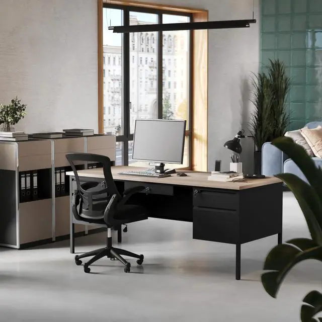 Perfect for both the office or classroom spaces, this commercial grade double pedestal desk will readily adapt to any environment.