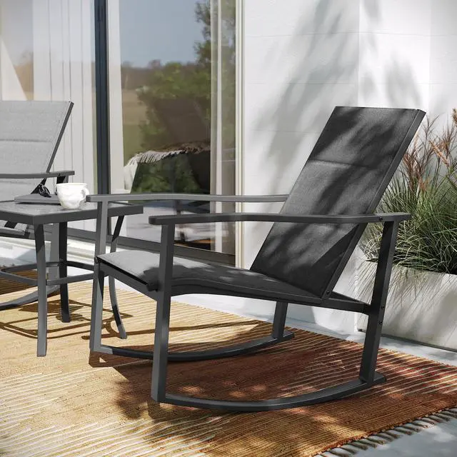 - Modern 3 Piece Outdoor Rocking Chairs and Table Set.