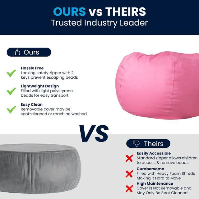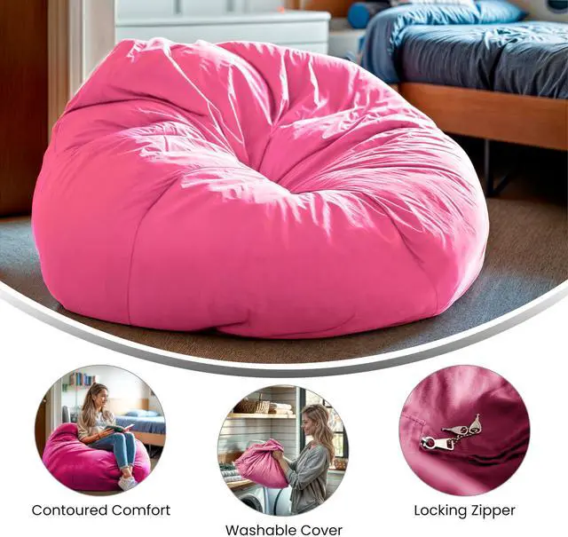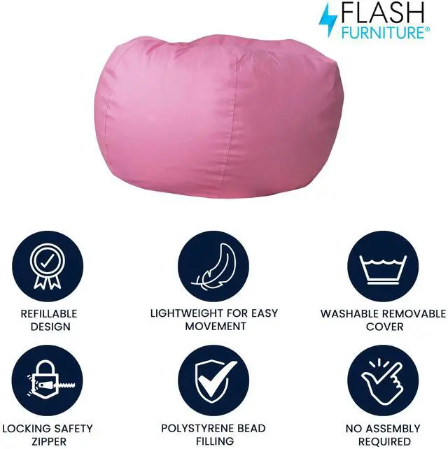 A metal safety zipper secures the beads and prevents them from leaking out. The upholstery can be spot cleaned with a damp cloth or remove the slipcover for machine washing when a more thorough cleaning is needed. Bean bags are cool chairs for young kids, teenagers and college students due to their casual nature. Not only comfortable for relaxing, their lightweight design makes them portable and versatile. Pair this large bean bag chair with our smaller version for a footrest to make your perfect lounge setting.