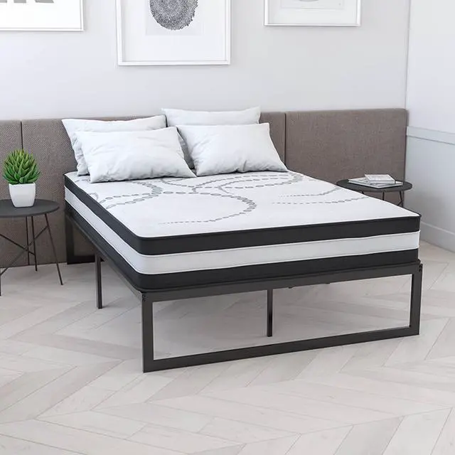 If you need a new bed set, but you don't want to go out shopping for furniture or hassle with getting it home from the store, just take the easy route and have everything delivered right to your door. This platform bed frame with mattress included has everything you need for a great nights sleep and you never have to leave home. Quality and convenience are essential for the modern lifestyle and this bed frame foundation with mattress set features a 14" freestanding metal platform bed frame offering 12.5 inches of clearance for storage and ease of cleaning.