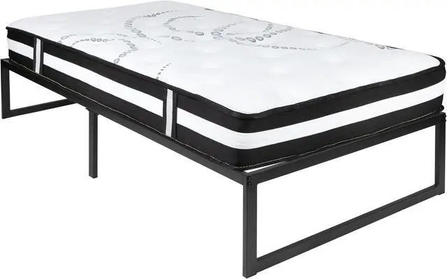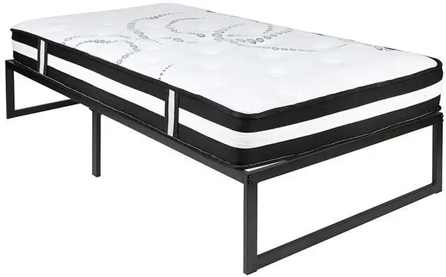 If you need a new bed set, but you don't want to go out shopping for furniture or hassle with getting it home from the store, just take the easy route and have everything delivered right to your door. This platform bed frame with mattress included has everything you need for a great nights sleep and you never have to leave home. Quality and convenience are essential for the modern lifestyle and this bed frame foundation with mattress set features a 14" freestanding metal platform bed frame offering 12.5 inches of clearance for storage and ease of cleaning.