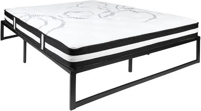 If you need a new bed set, but you don't want to go out shopping for furniture or hassle with getting it home from the store, just take the easy route and have everything delivered right to your door. This platform bed frame with mattress included has everything you need for a great nights sleep and you never have to leave home. Quality and convenience are essential for the modern lifestyle and this bed frame foundation with mattress set features a 14" freestanding metal platform bed frame offering 12.5 inches of clearance for storage and ease of cleaning.