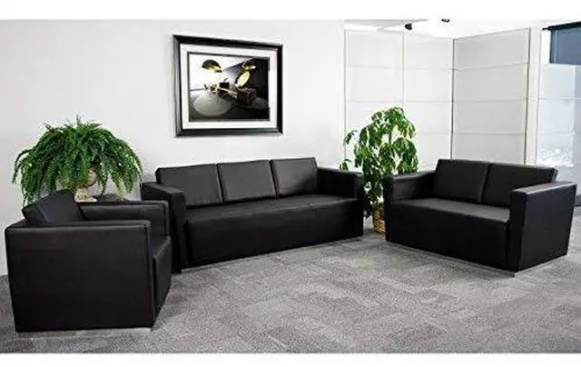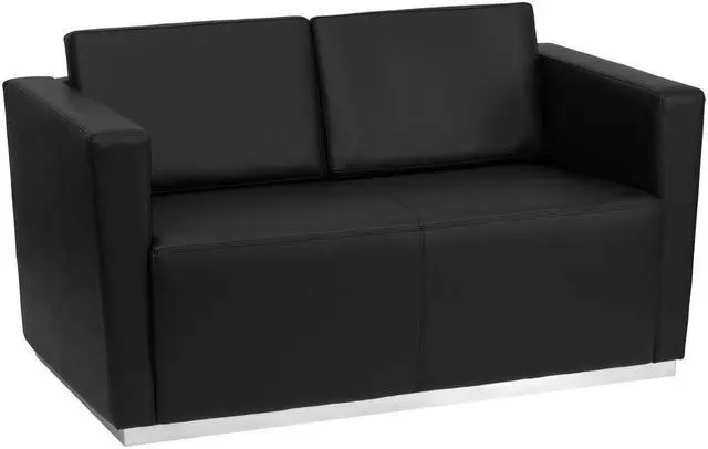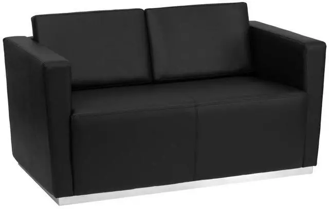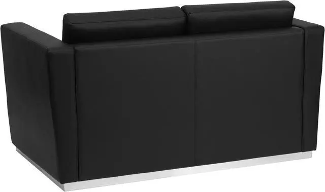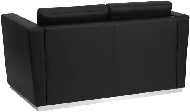 Complete your upscale reception area with the Trinity Series Contemporary LeatherSoft Love Seat with Stainless Steel Base. The foam filled cushions and LeatherSoft upholstery makes this chair exceptionally soft and comfortable. The contemporary design of this furniture adapts in several different settings. Combining comfort and style, this chair is designed with a taut seat and back with straight arms that adds simple elegance to any space. Built with a stainless steel base, this chair is exceptionally stable and will withstand heavy loads. Not only will this chair fit in a professional environment, but will add a modern look to your home.